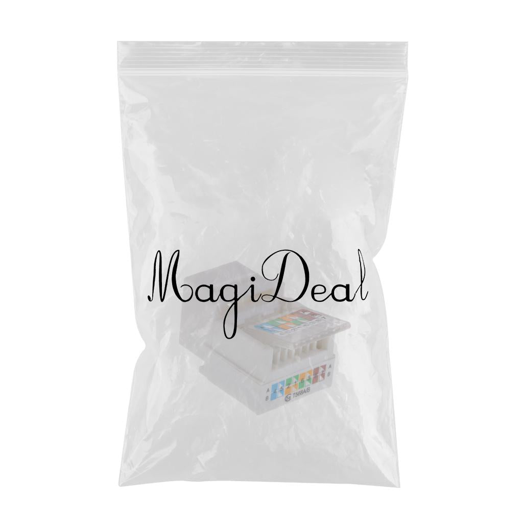 Heavy duty RJ45 modular jack for patch panels, surface mount boxes, or wall plates (face plates) with standard ports.