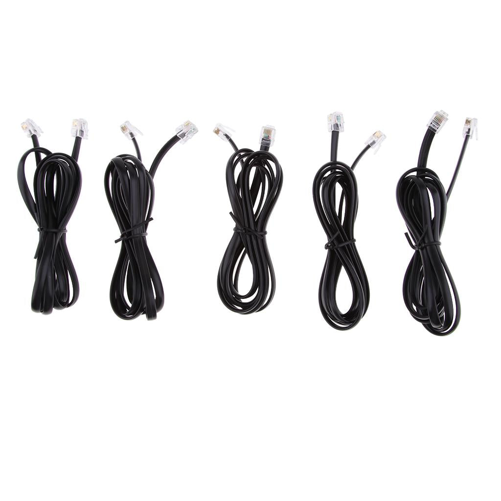 5Pcs 6P6C RJ12 Male to Male Flat Straight Landline Telephone Cable Cord 1.5m