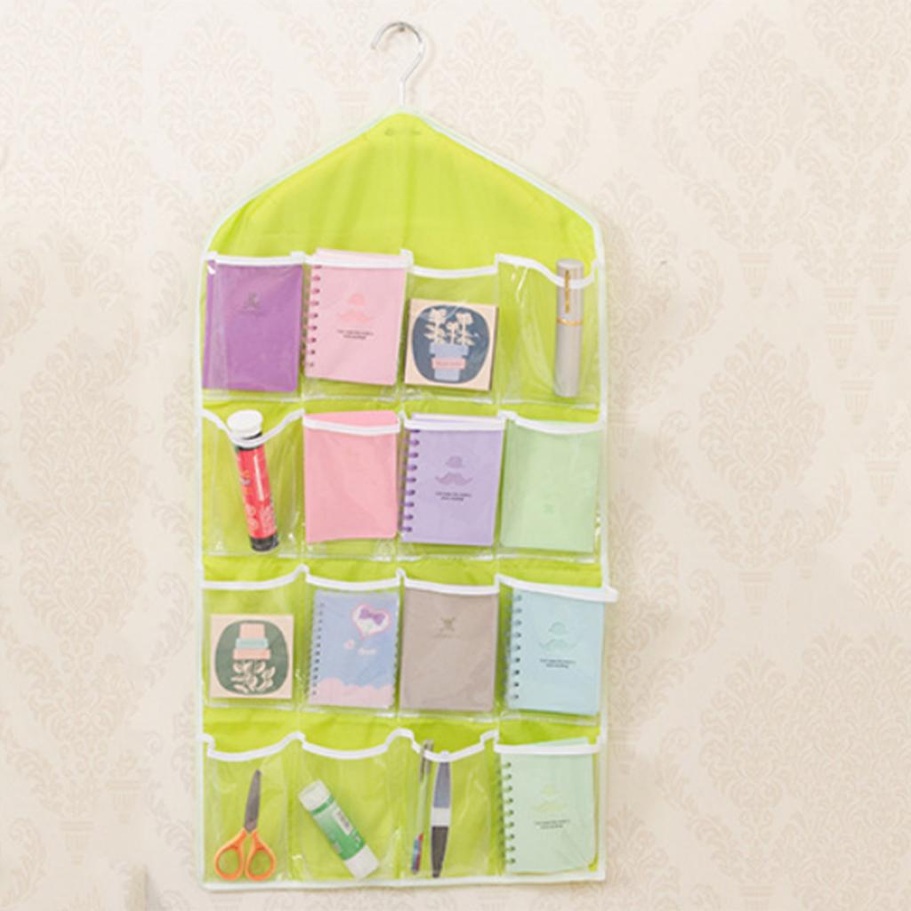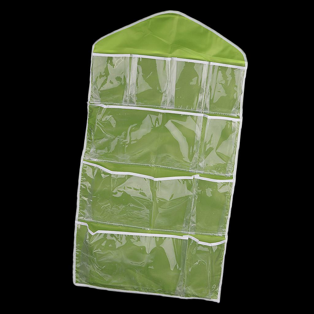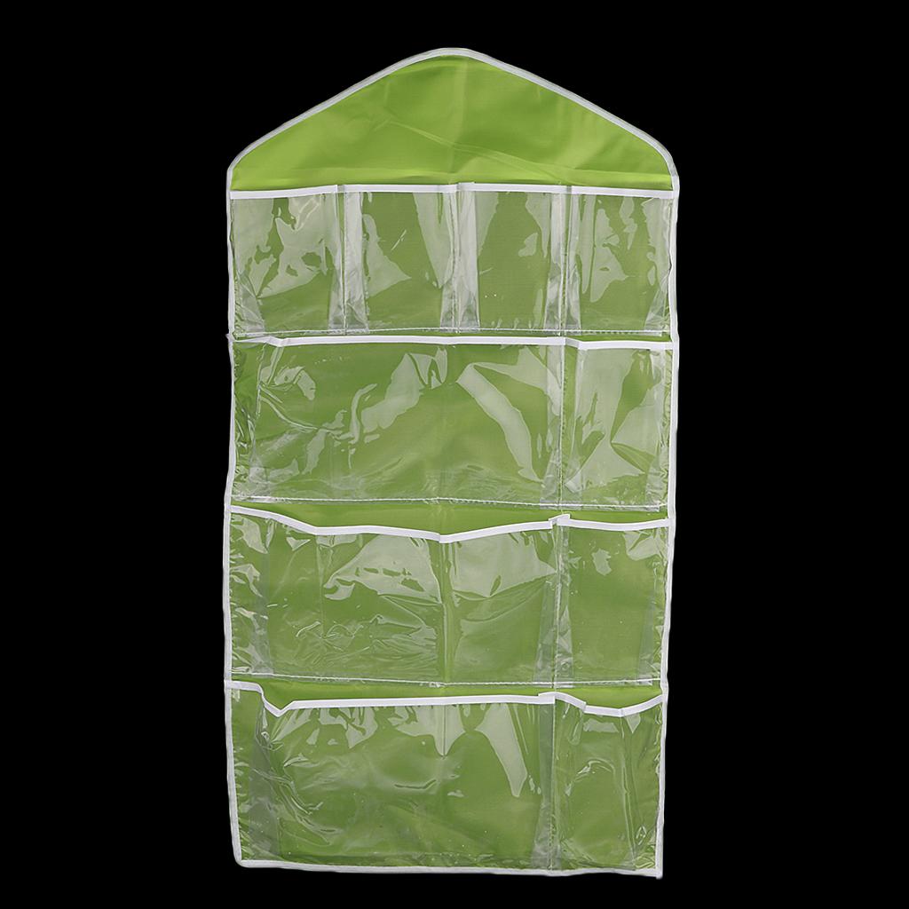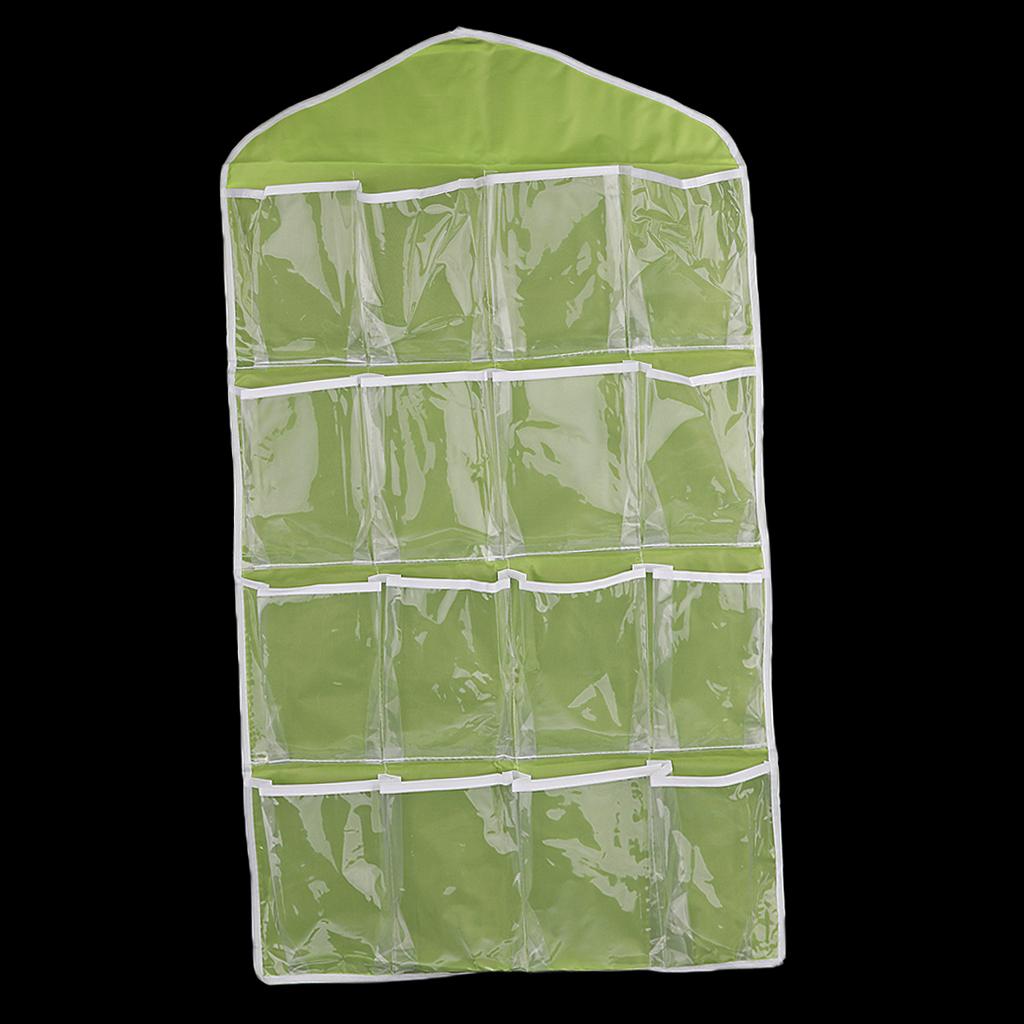 16 Pockets Door Wall Hanging Organizer Sock Underwear Storage Bag Green 1