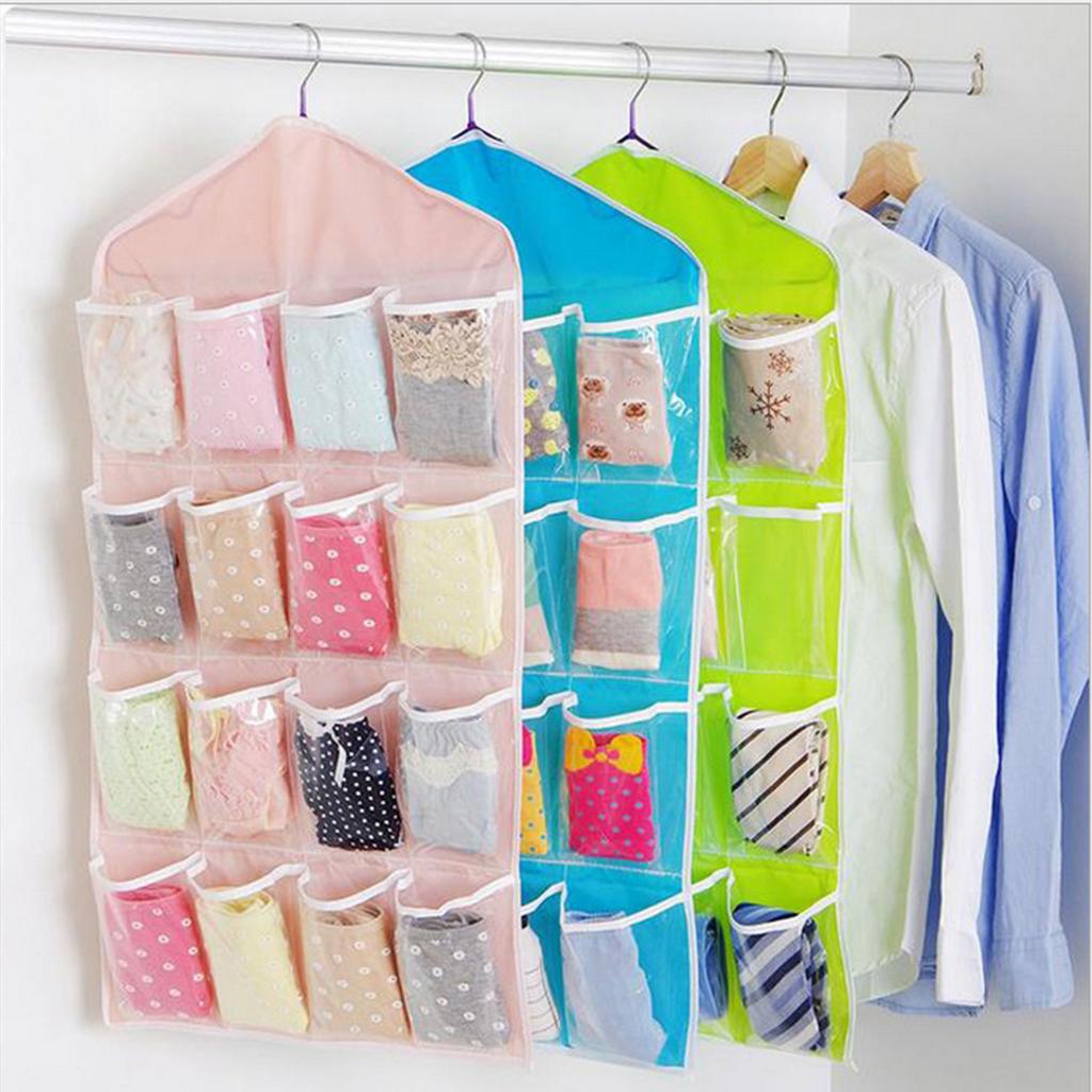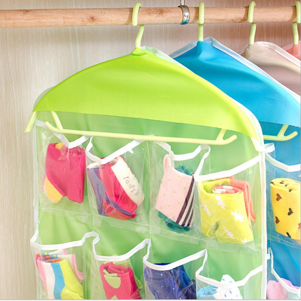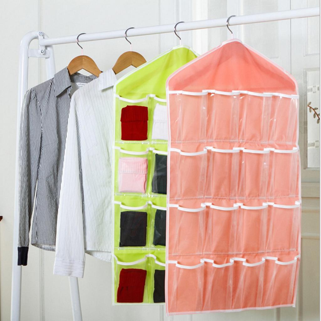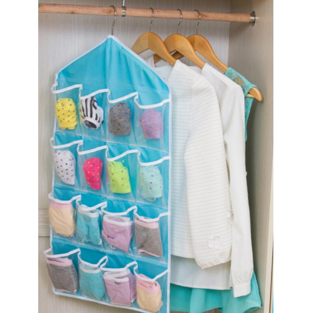 16 Pockets Door Wall Hanging Organizer Sock Underwear Storage Bag Green 1