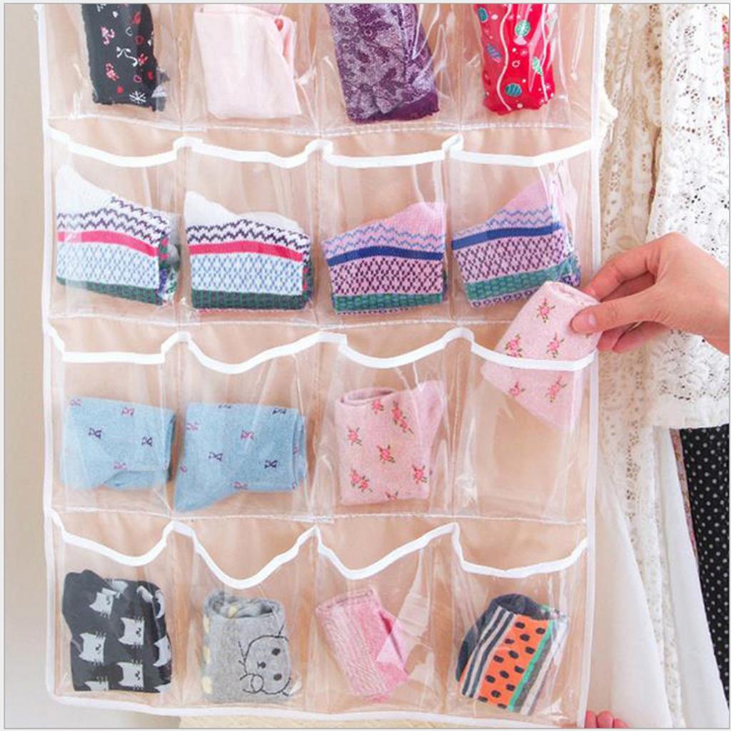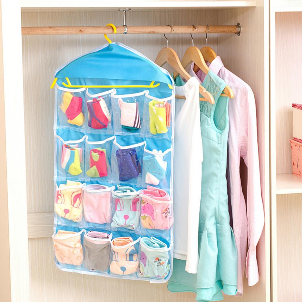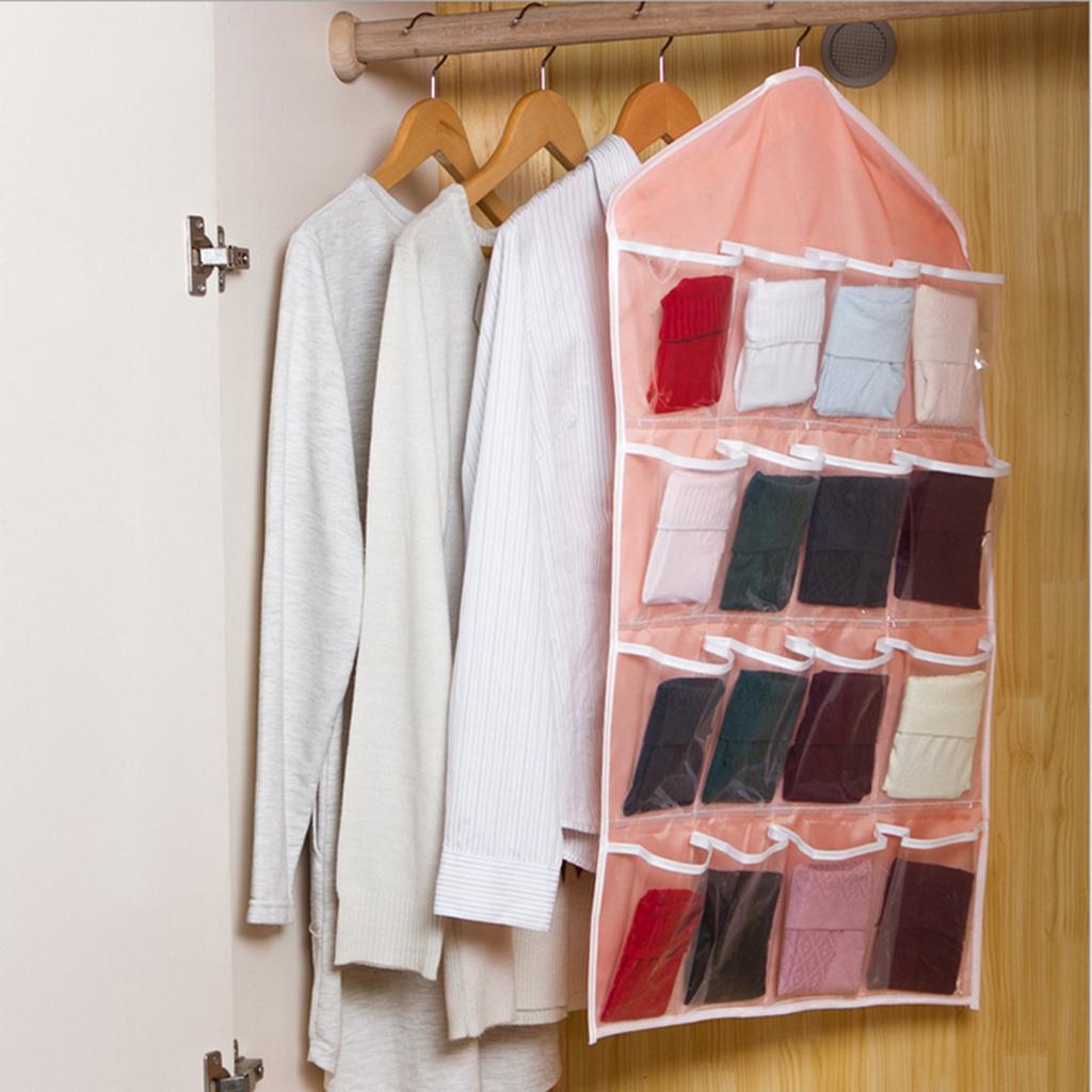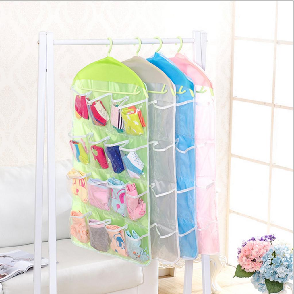 16 Pockets Door Wall Hanging Organizer Sock Underwear Storage Bag Green 1