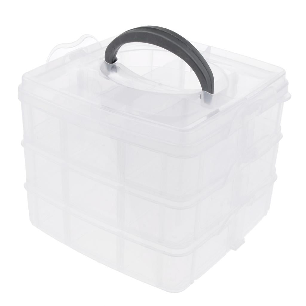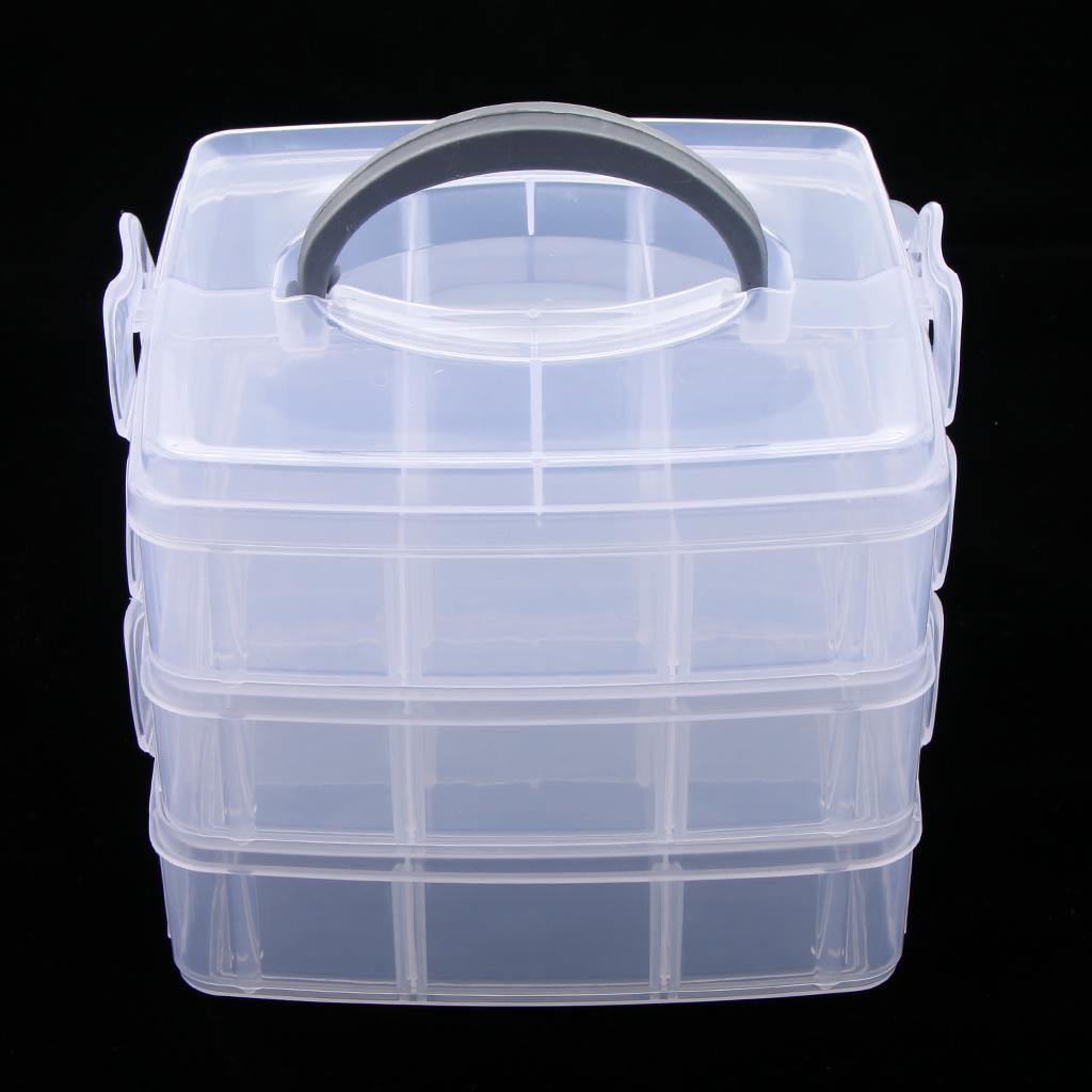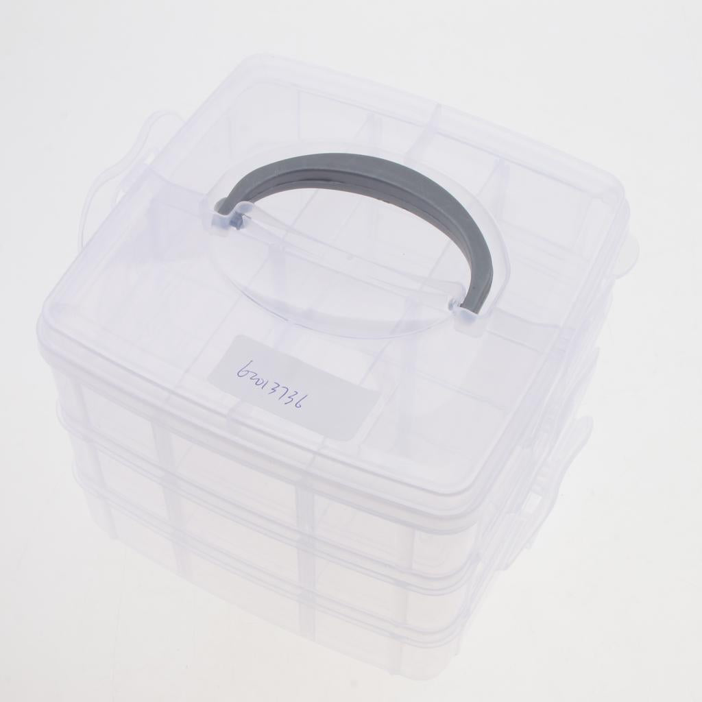 Three layers 18 adjustable compartments clear hard plastic storage box organizer household.