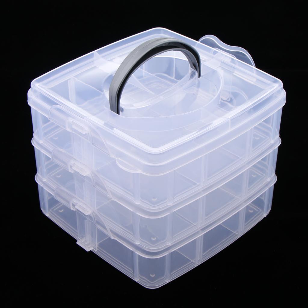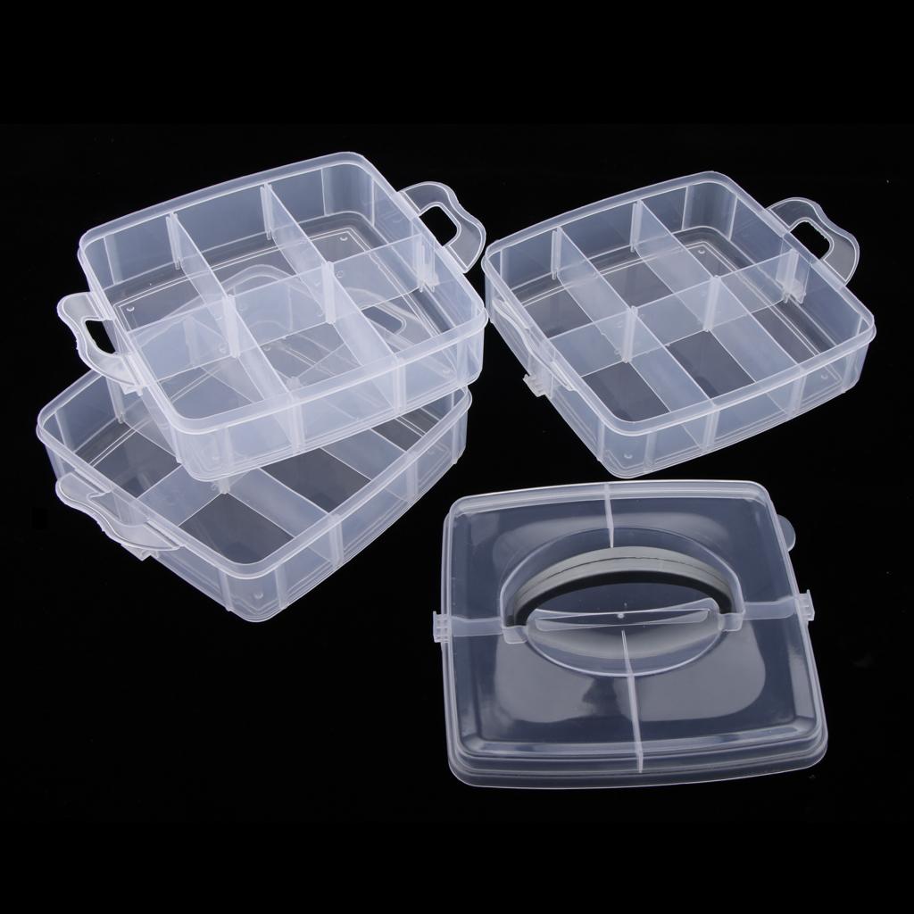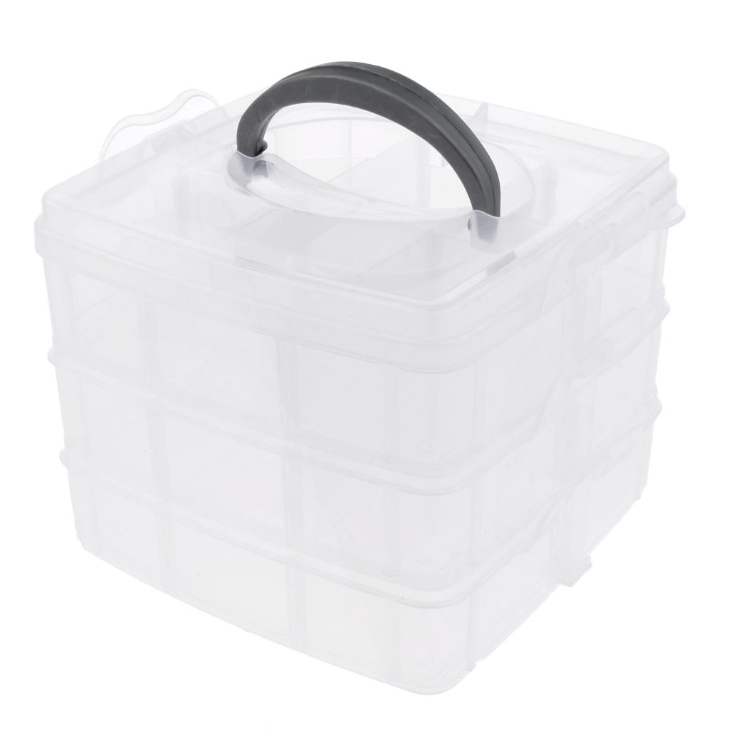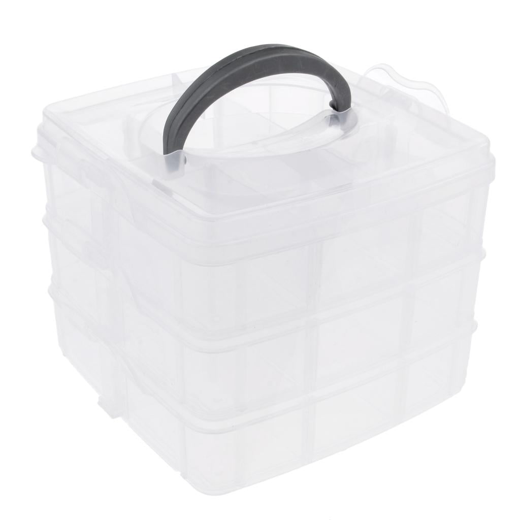 Three layers 18 adjustable compartments clear hard plastic storage box organizer household.