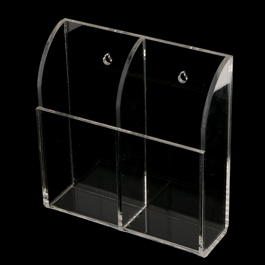 2 Grids TV Remote Control Phone Organizer Storage Box Clear Holder for Wall