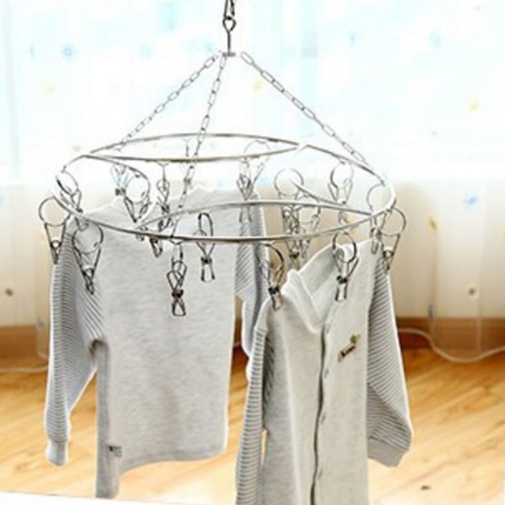 20 Peg Laundry Airer Rack Windproof Drying Drier Clothes Underwear Sock Hook