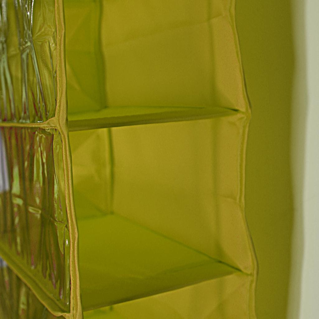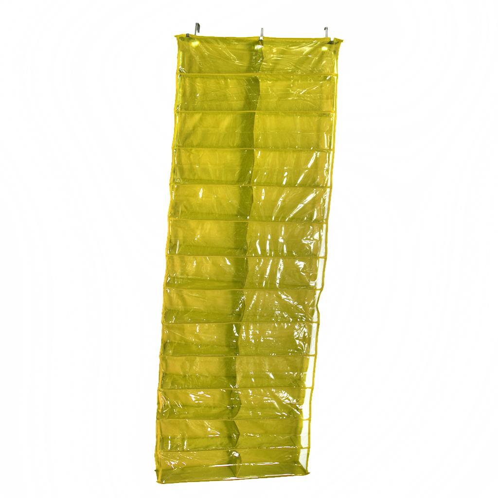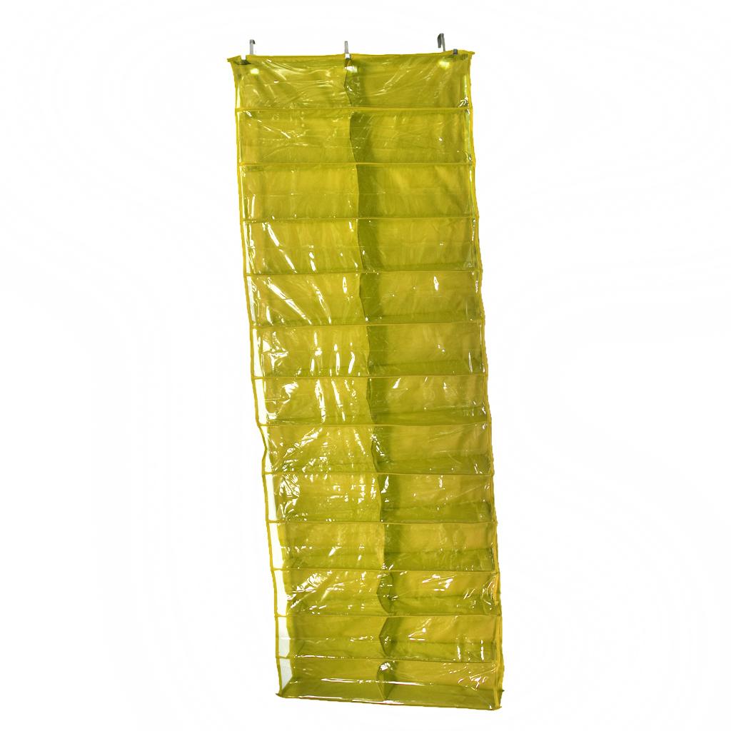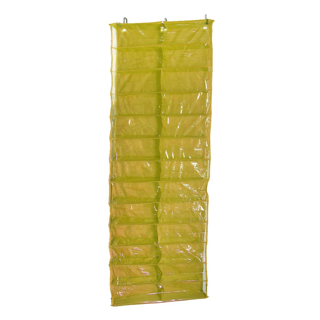 • The low-profile organizer hangs from 3 metal hooks that fit over nearly any door.