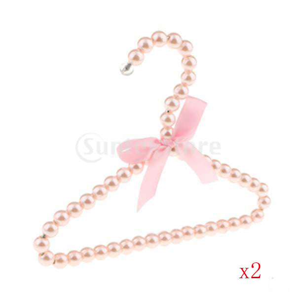 2x 20cm Pearl Beaded Kids Clothes Hanger Coat Dress Pants Hook Holder Pink