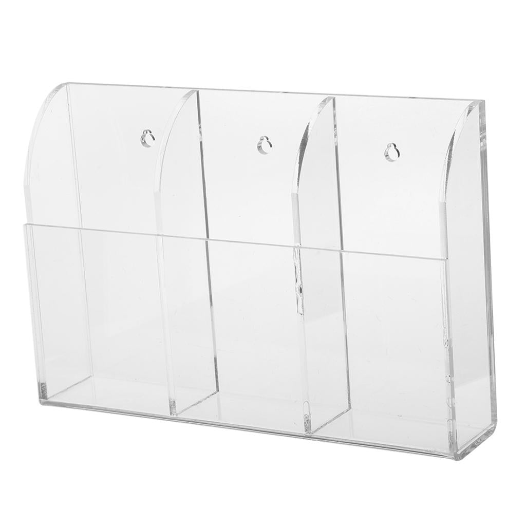 4mm 3Grids Acrylic Druble TV Remote Control Holder Wall Mount Storage Box