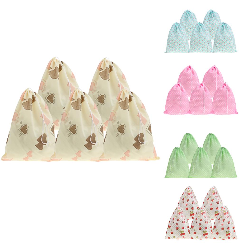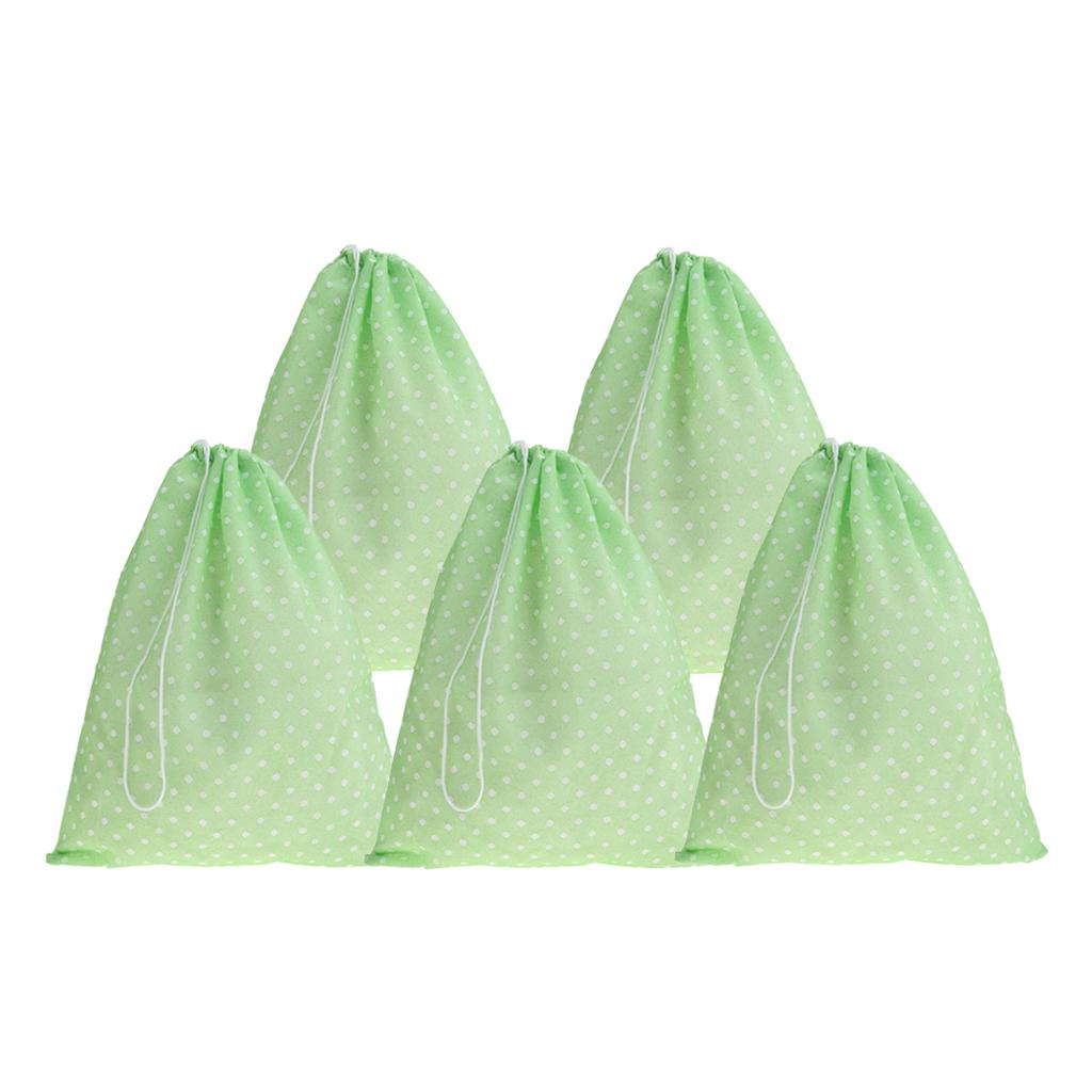 5 Printed Portable Shoes Bag Travel Storage Pouch Drawstring Dust Bags Green