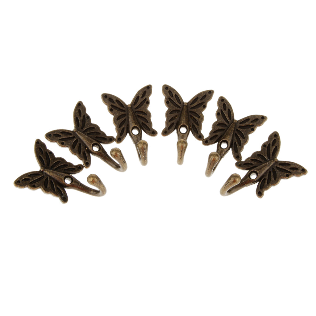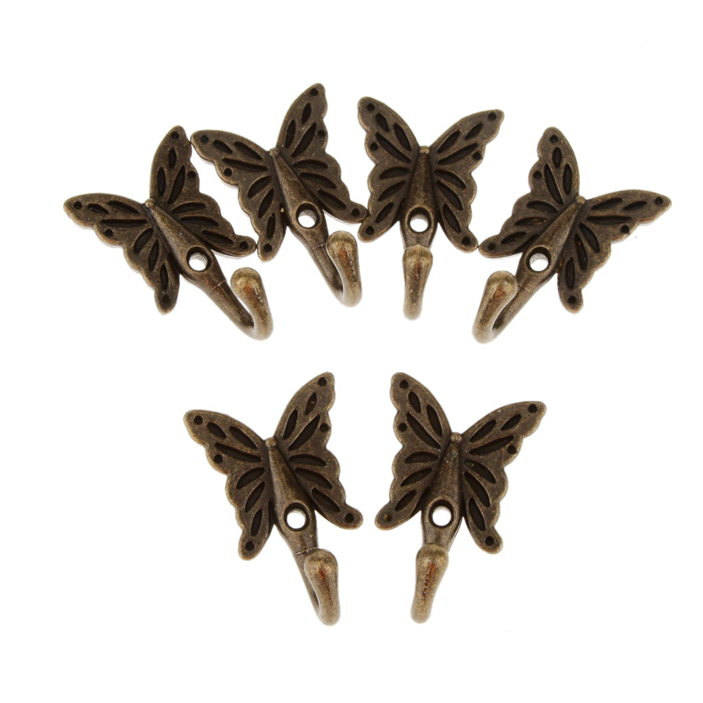Antique Butterfly Wall Mounted Hooks Coat Robe Clothes Towel Hangers Pack of 6