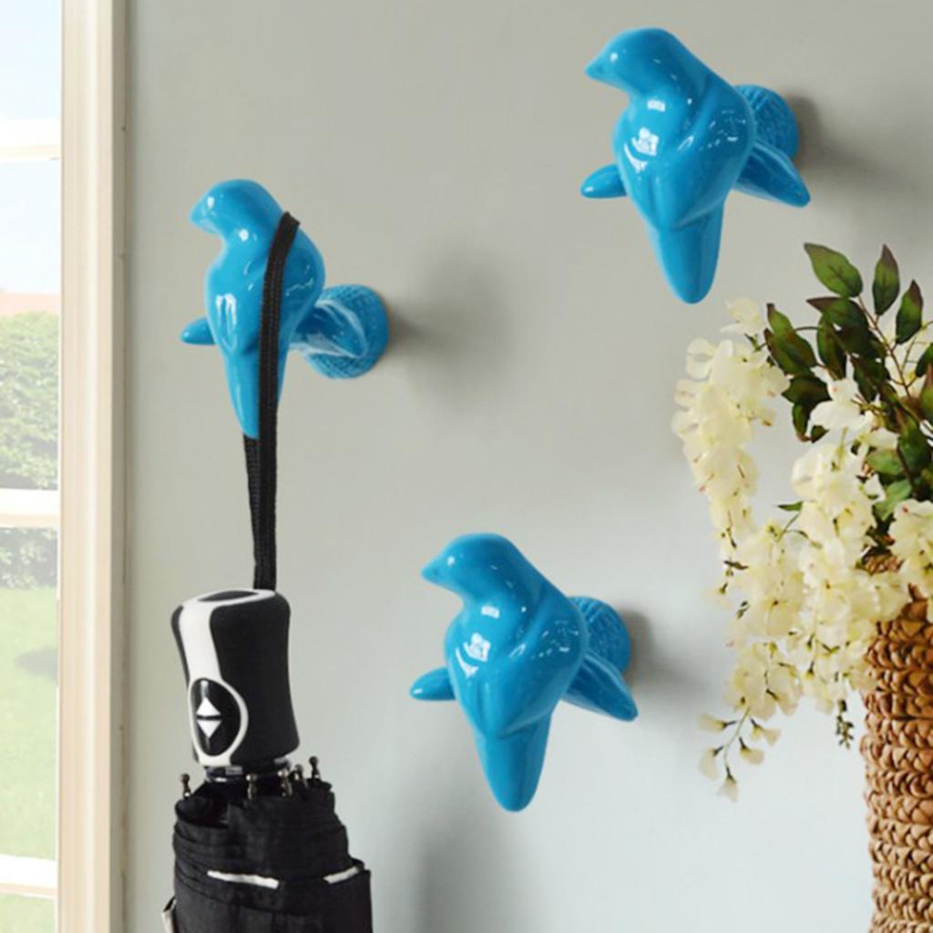 Bird Shape Clothes Hat Hanger Hooks Dressing Room Bathroom Wall Decor Blue