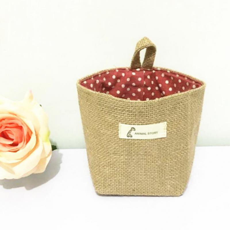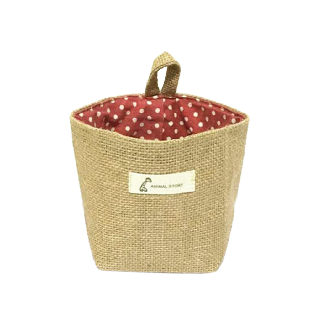 Cotton Linen Bag Sack Container Multipurpose Storage Basket Pot Red Dots