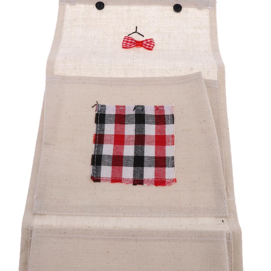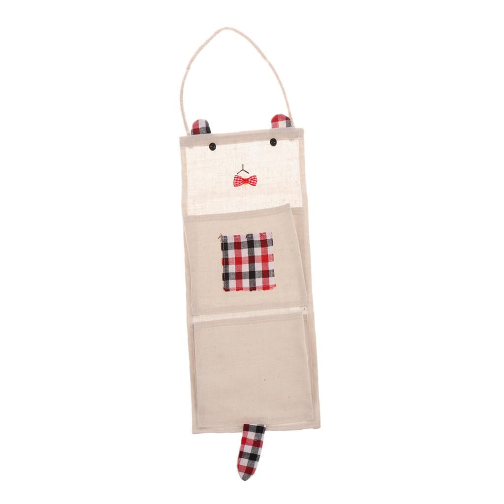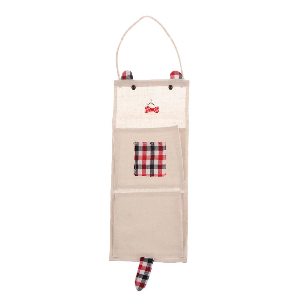 Cotton Linen Door Wall Hanging Storage Bag Home Organizer 2 Pockets - Red