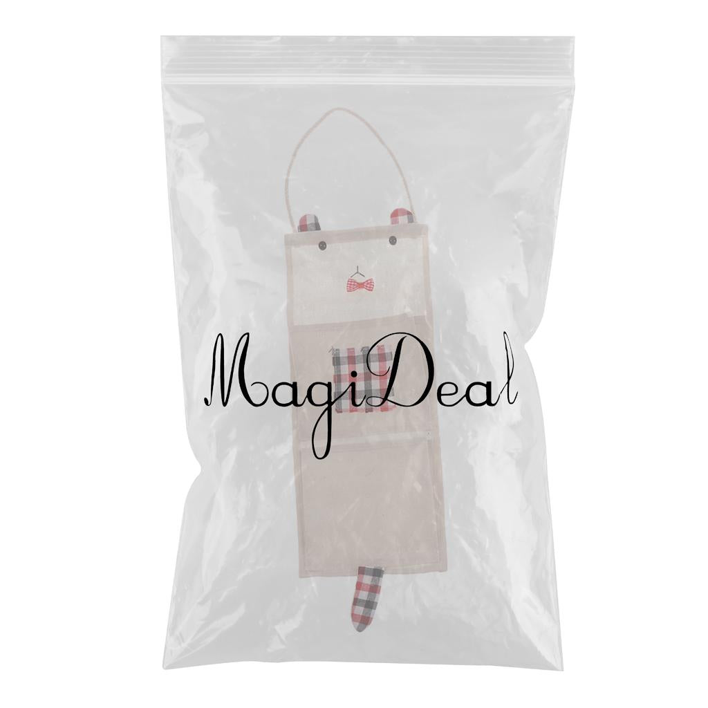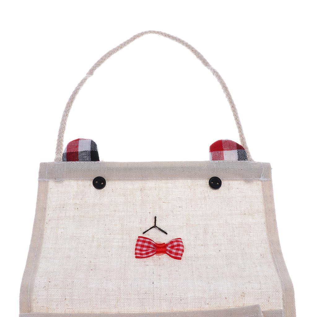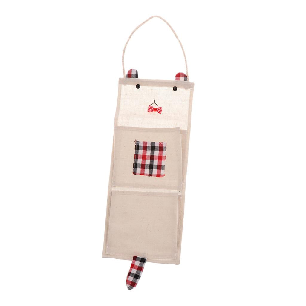 Cotton Linen Door Wall Hanging Storage Bag Home Organizer 2 Pockets - Red