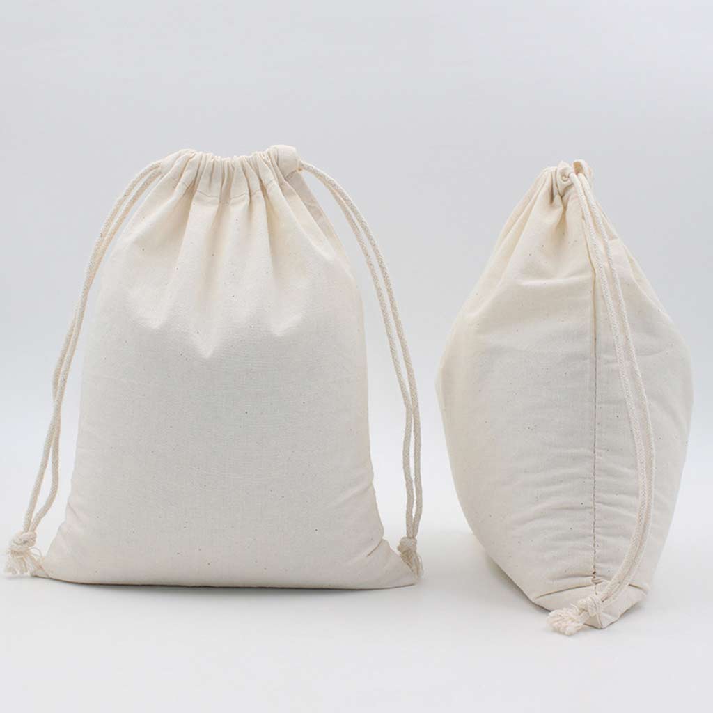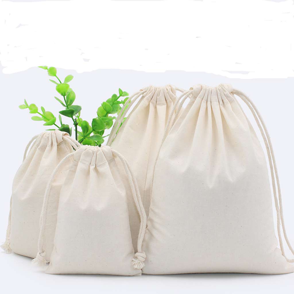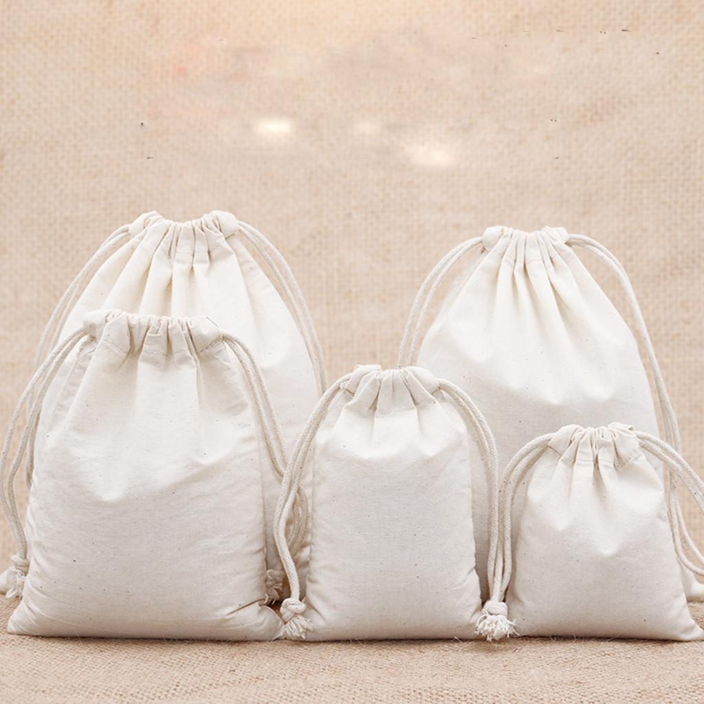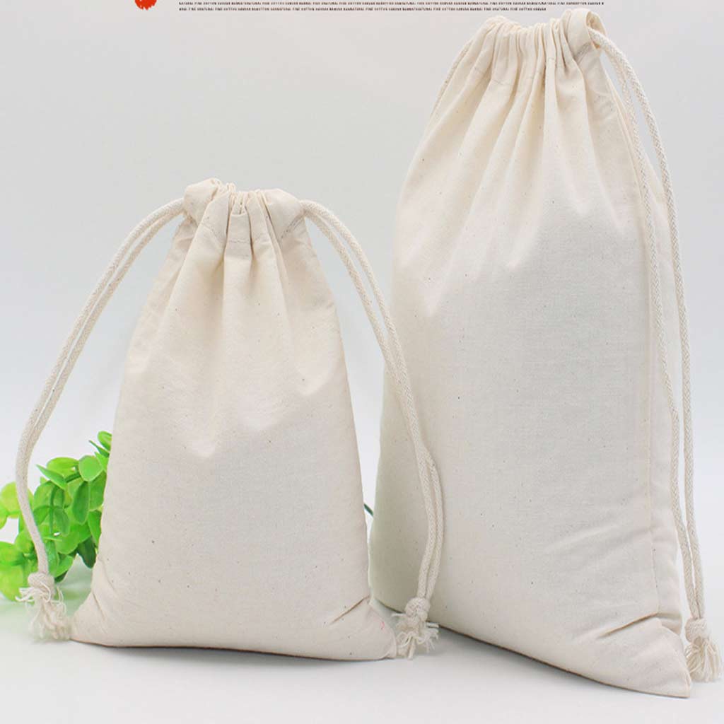 Natural plain cotton drawstring pouch christmas sack bags gifts bags