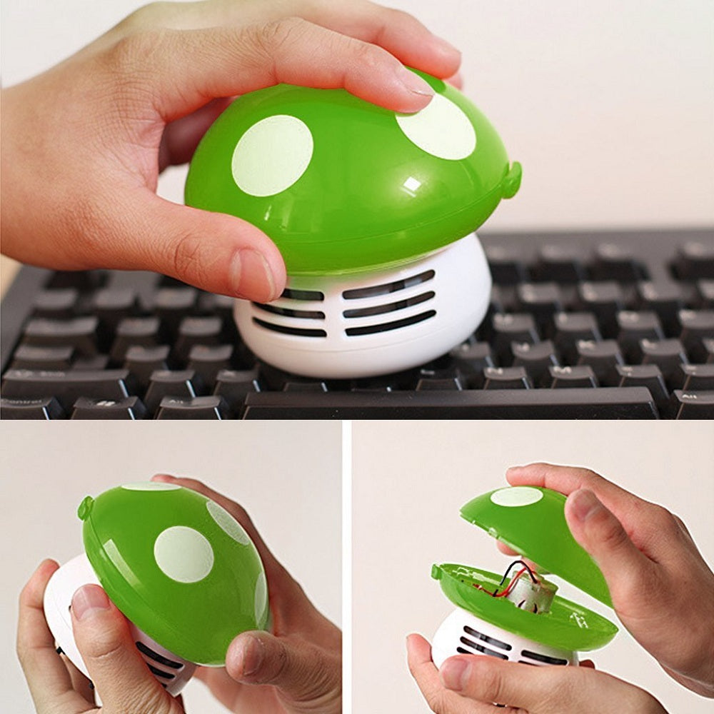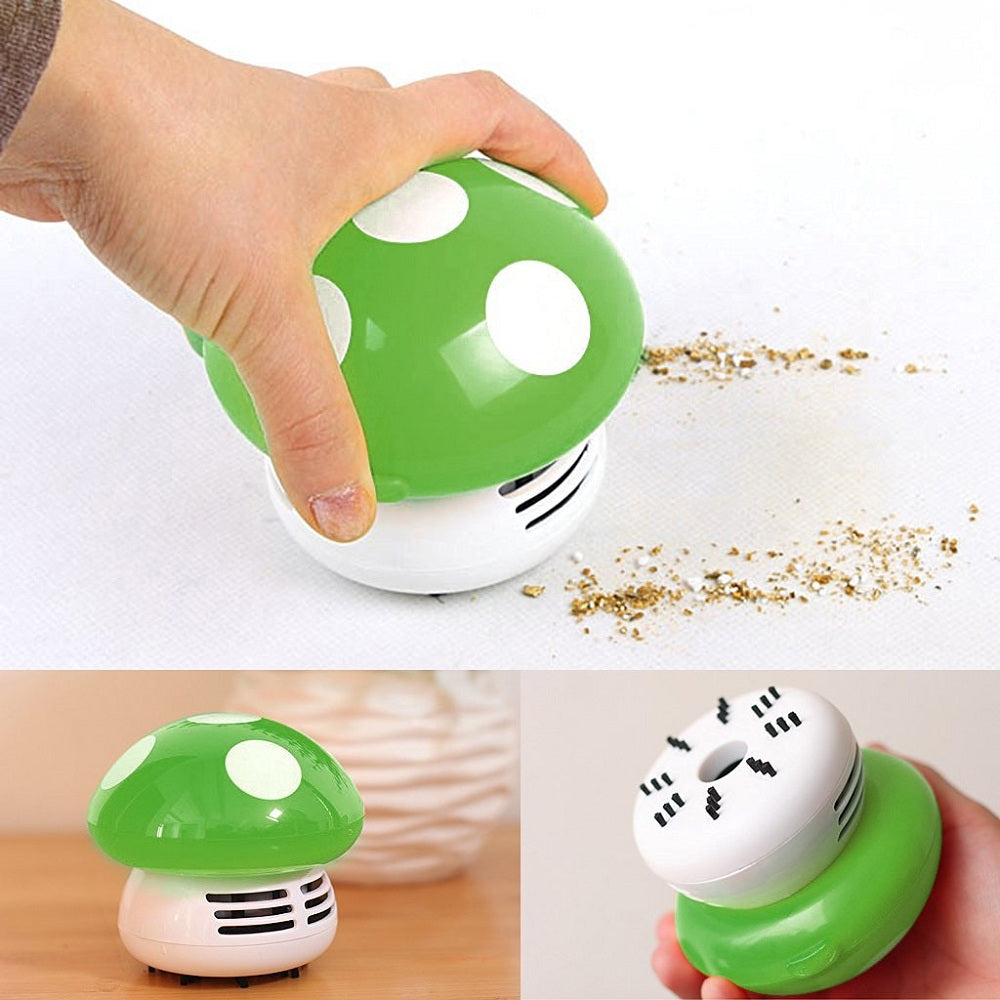 Cute Mini Mushroom Corner Desk Table Dust Vacuum Cleaner Sweeper Green