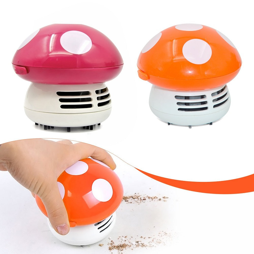 Cute Mini Mushroom Corner Desk Table Dust Vacuum Cleaner Sweeper Orange