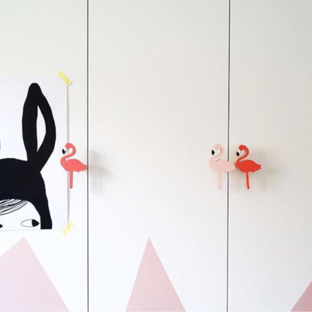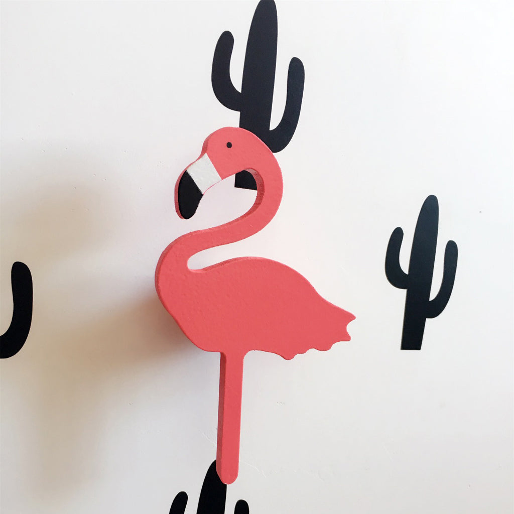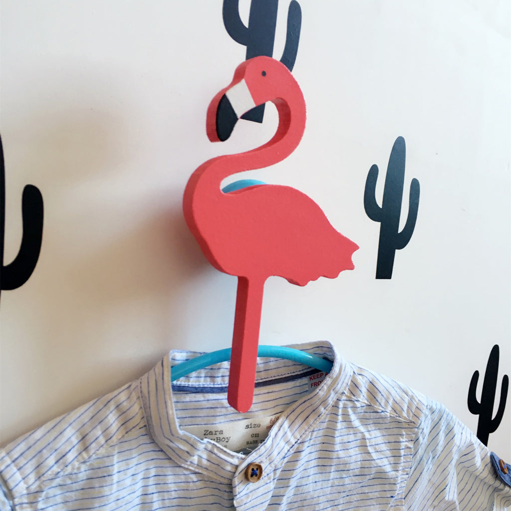 Cute flamingo shape and red painted wood, ideal for children’s room