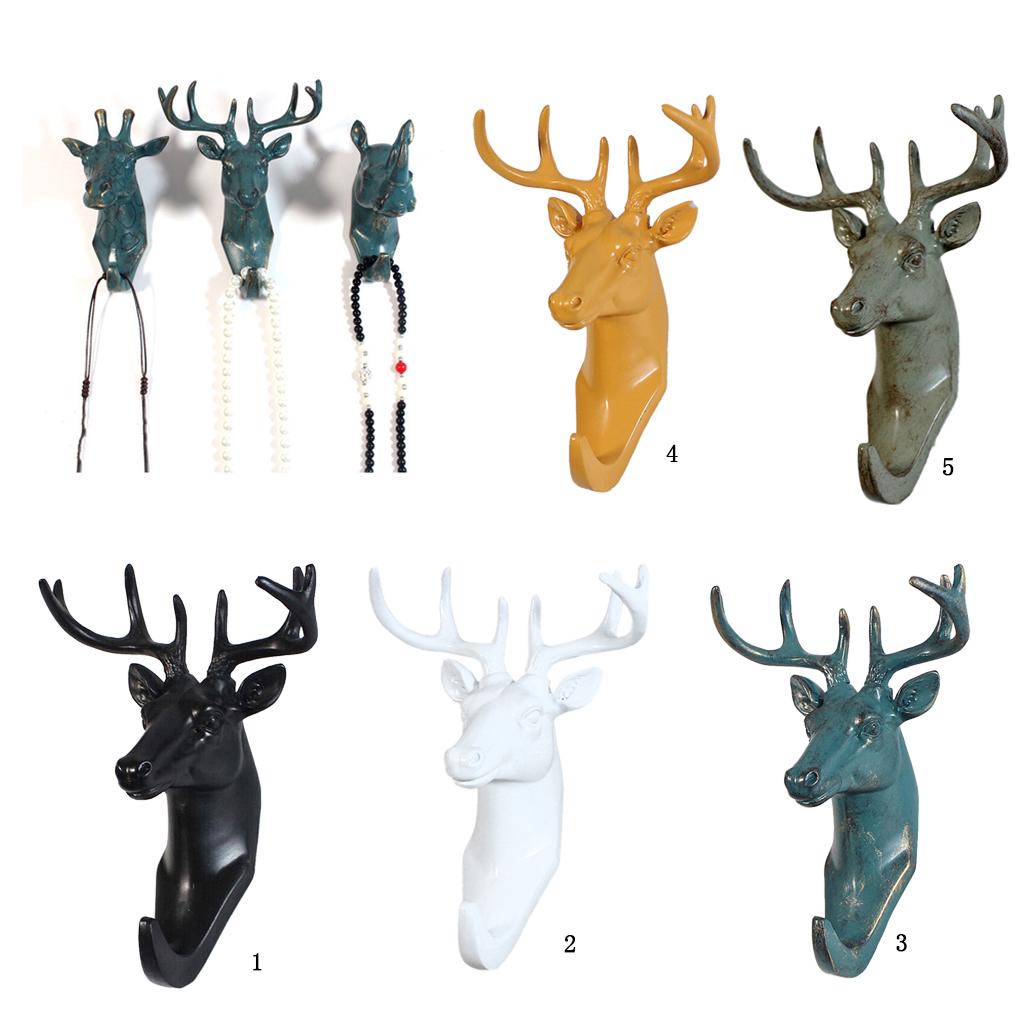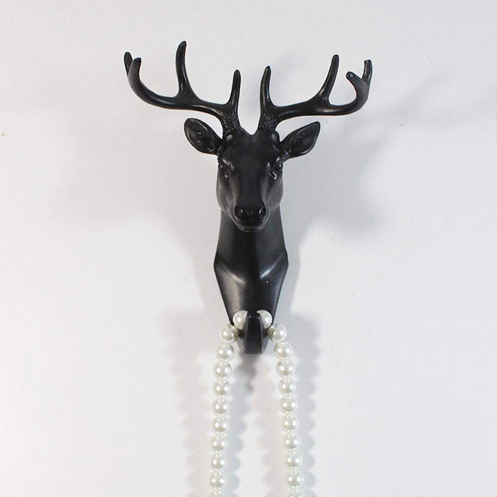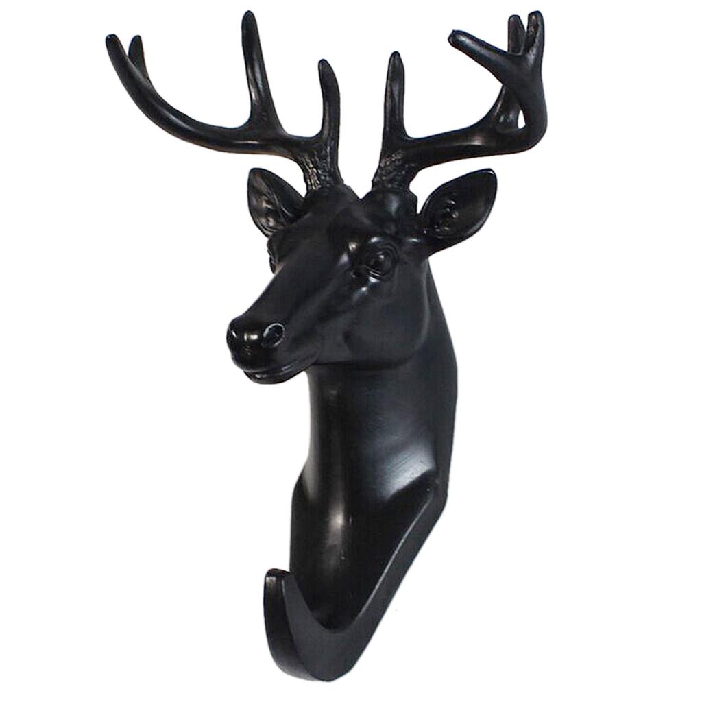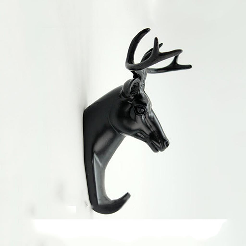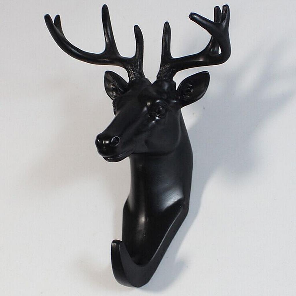 Decorative Deer Head Wall Mount Hanger Resin Coat Hat Hook Rustic Black
