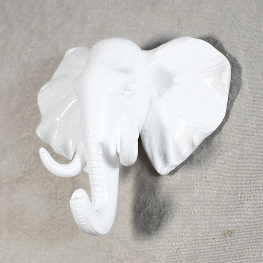 Decorative Elephant Head Wall Mount Hanger Resin Coat Hat Hook Rustic White