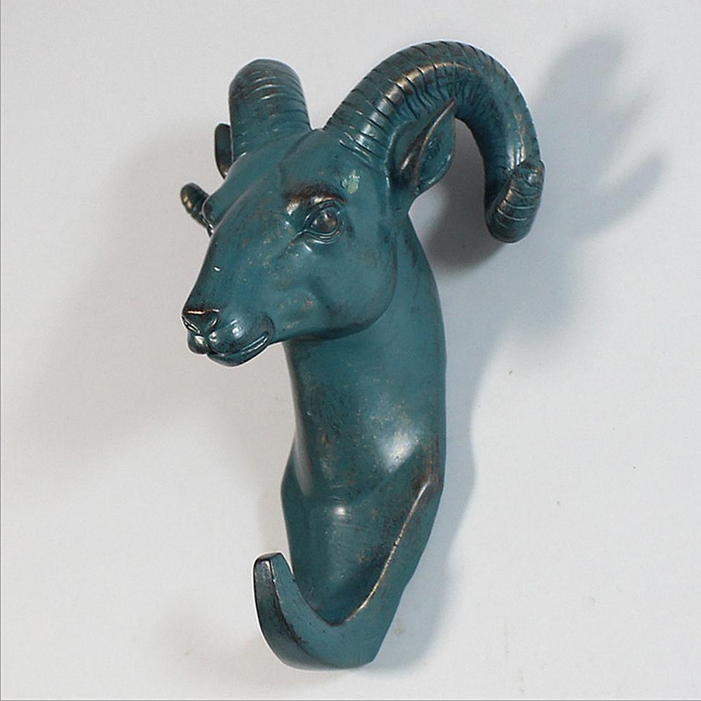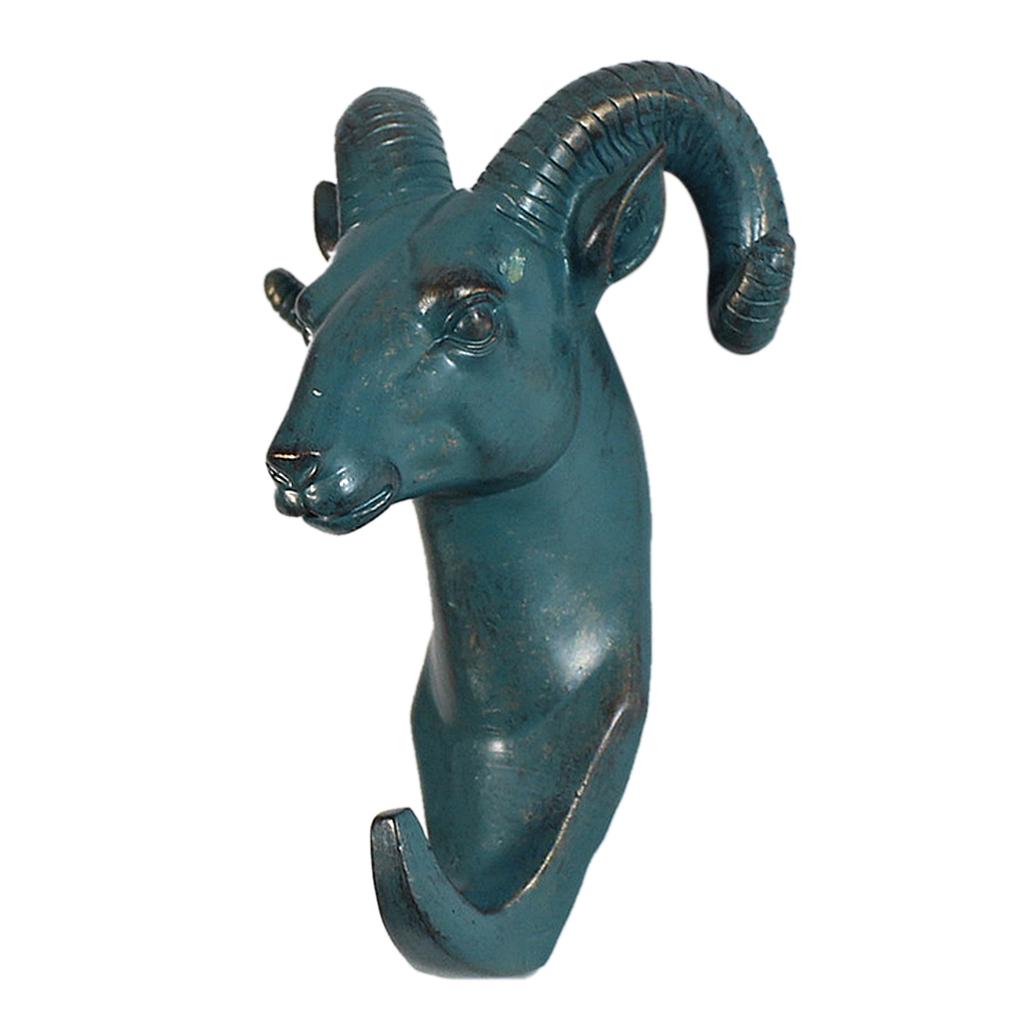 Decorative Goat Head Wall Mount Hanger Resin Coat Hat Hook Rustic Bronze