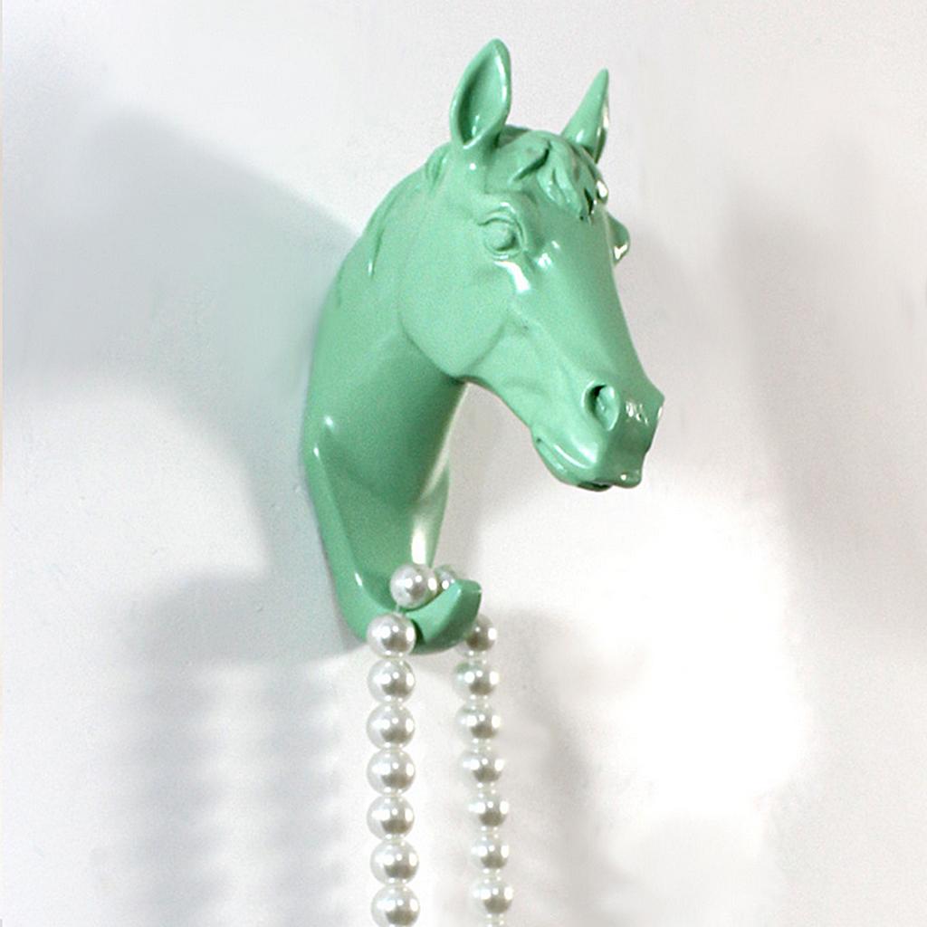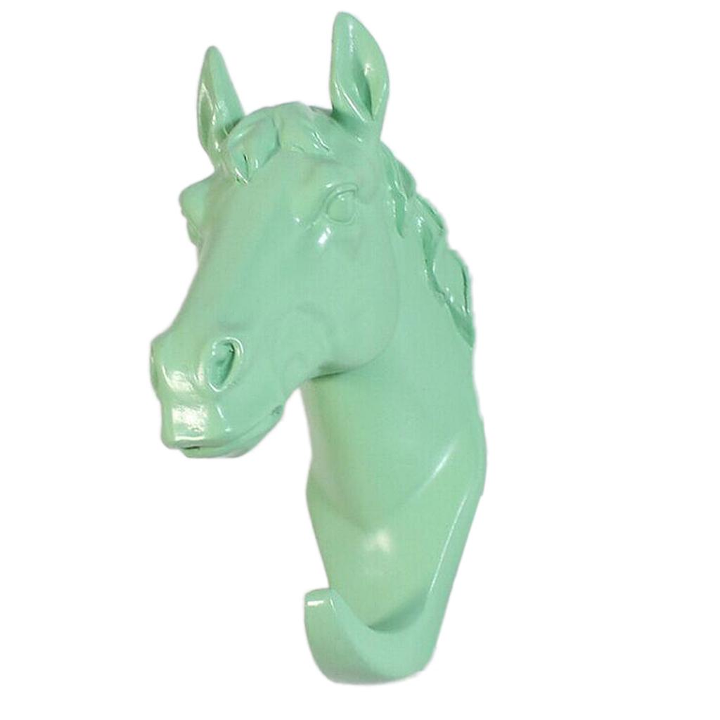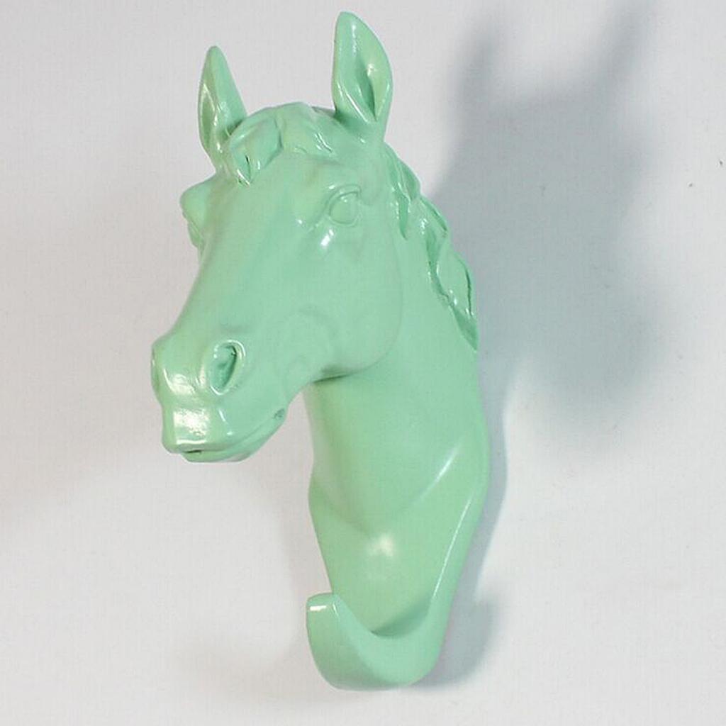 Decorative Horse Head Wall Mount Hanger Resin Coat Hat Hook Rustic Green