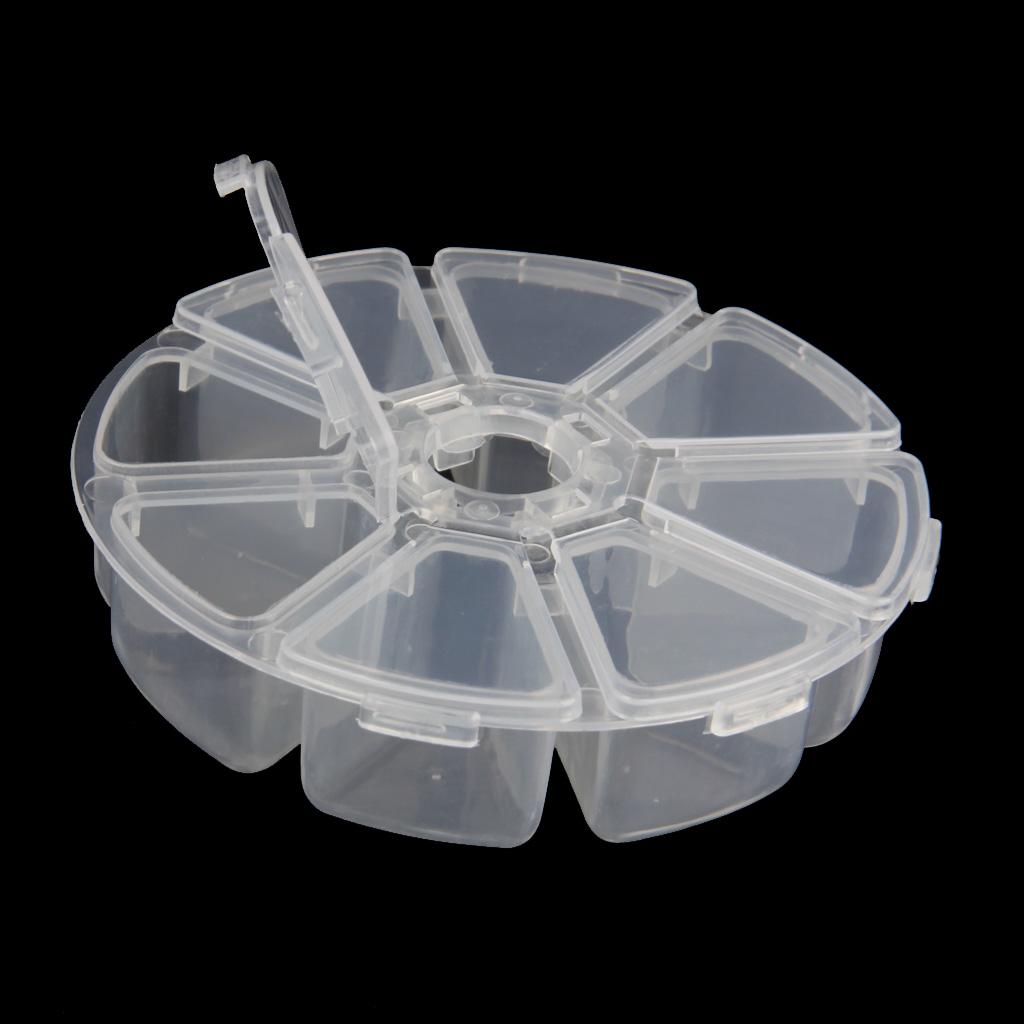 Fixed Round Compartment Plastic Storage Box Jewelry Nail Container 8 Slots