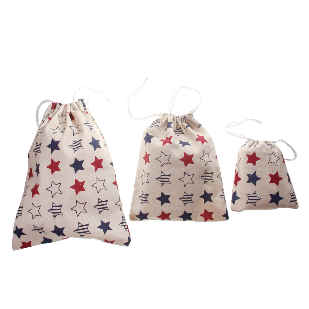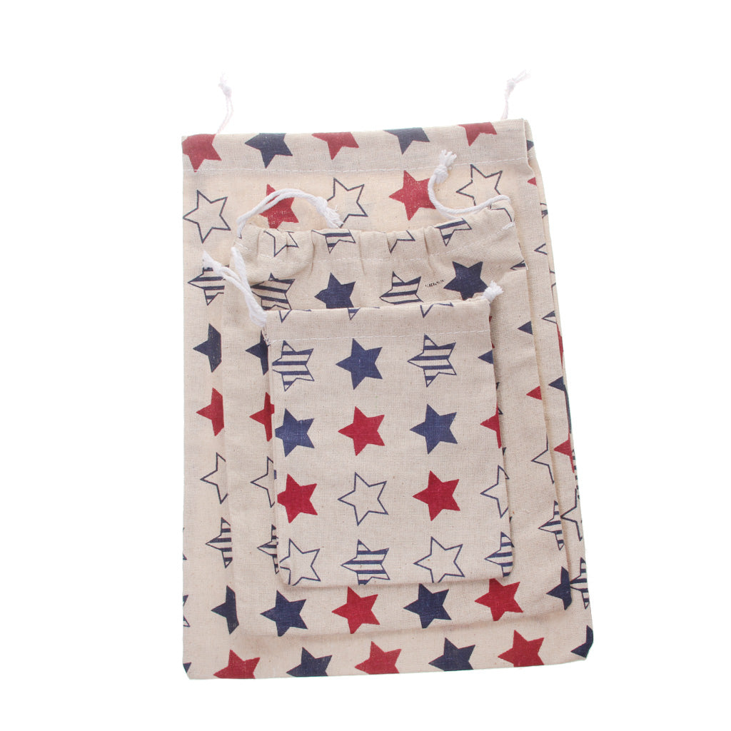 Linen Travel Bag Jewelry Makeup Storage Pouch Drawstring Holder Bag Star