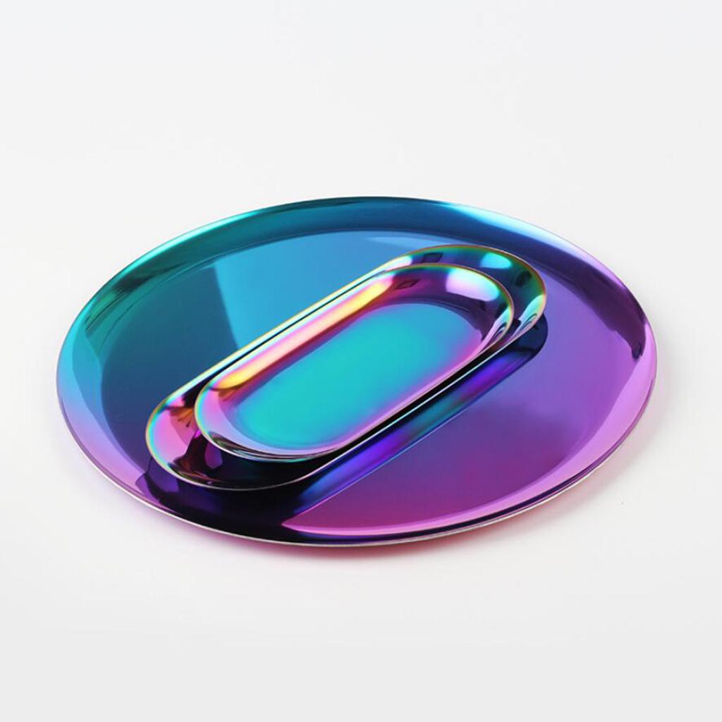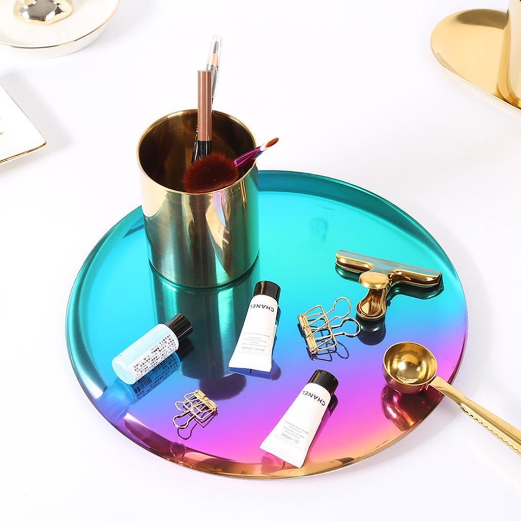 Nordic Style Round Stainless Steel Storage Tray Disk Fruit Plate Gradient