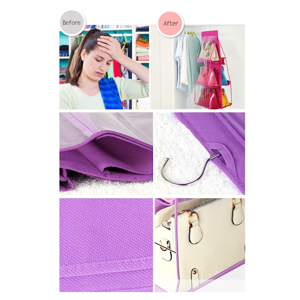 Perspective 6-layers Hanging Bag Organizer Handbag Storage Holder Purple
