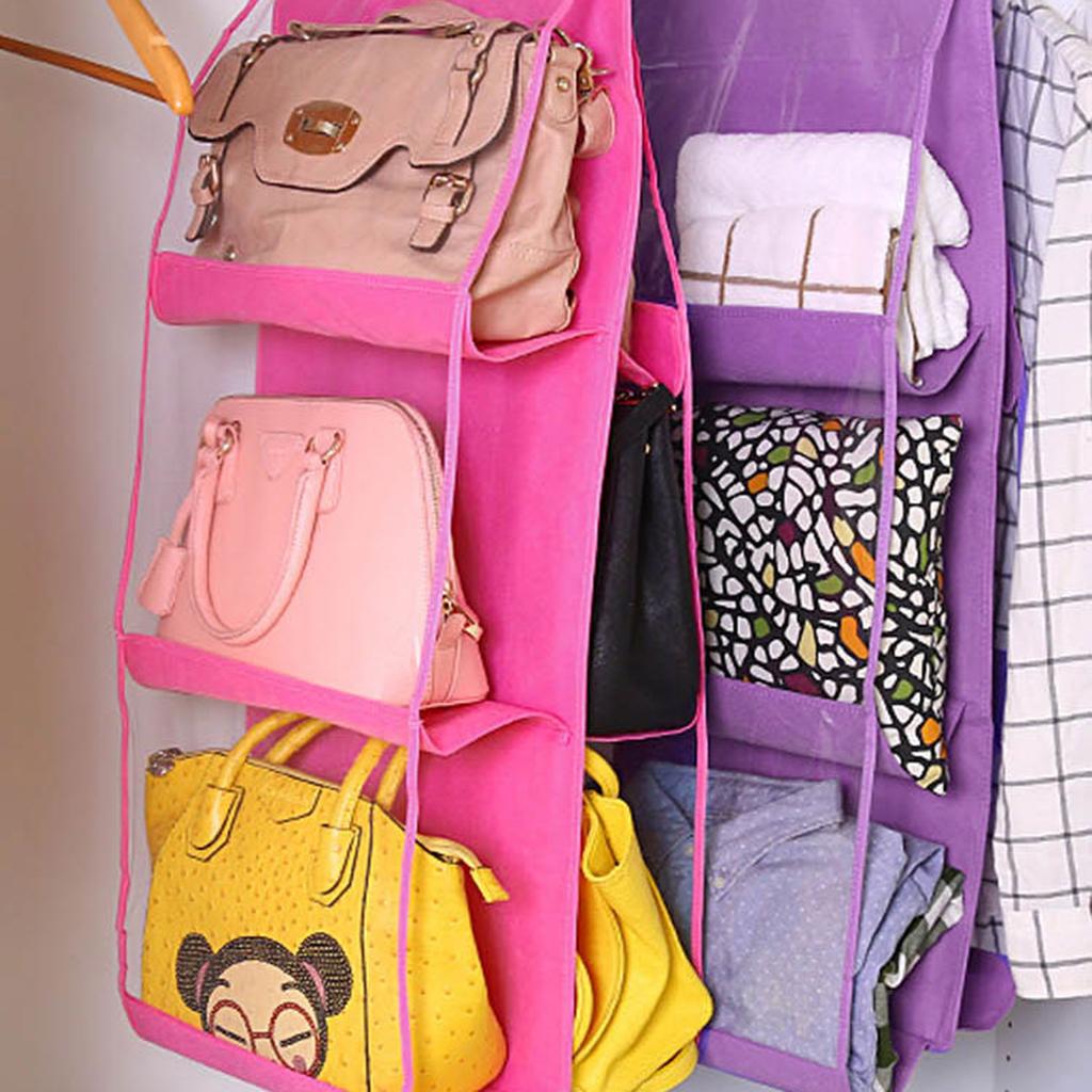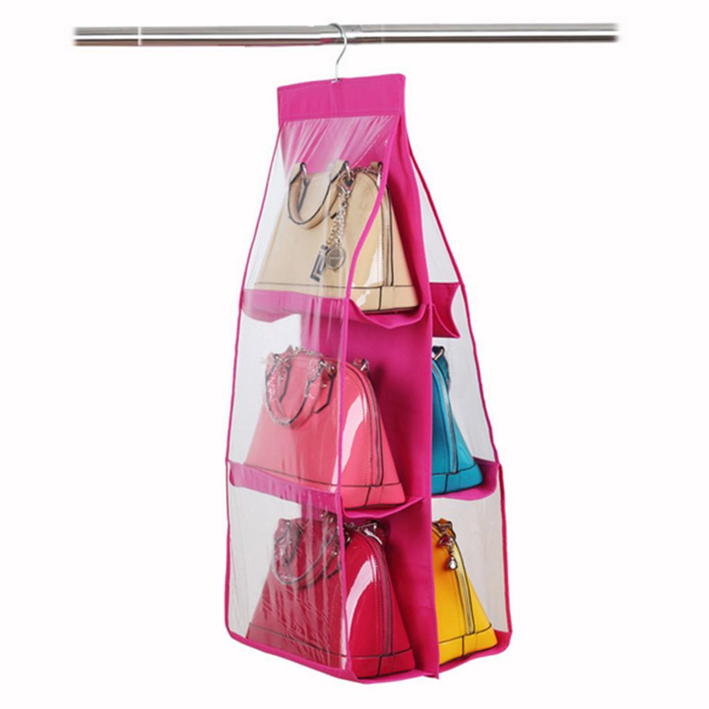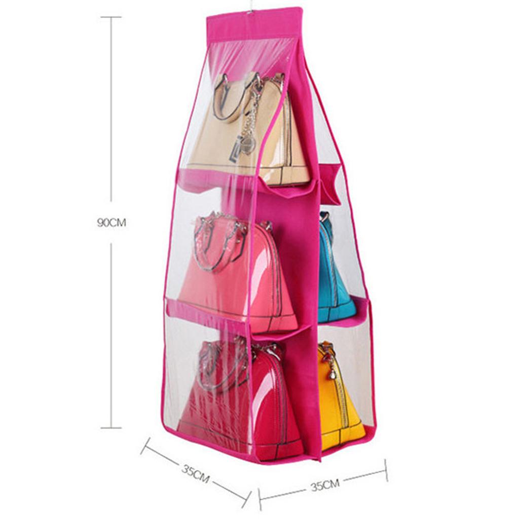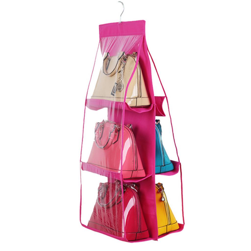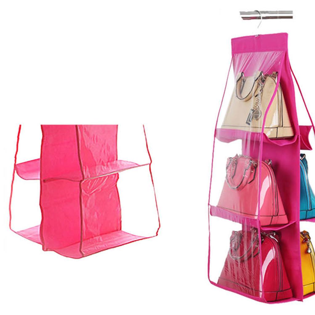 Perspective 6-layers Hanging Bag Organizer Handbag Storage Holder Rose Red