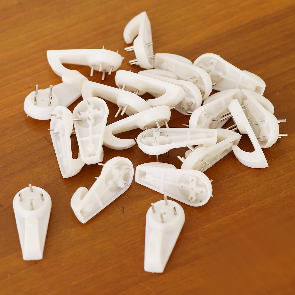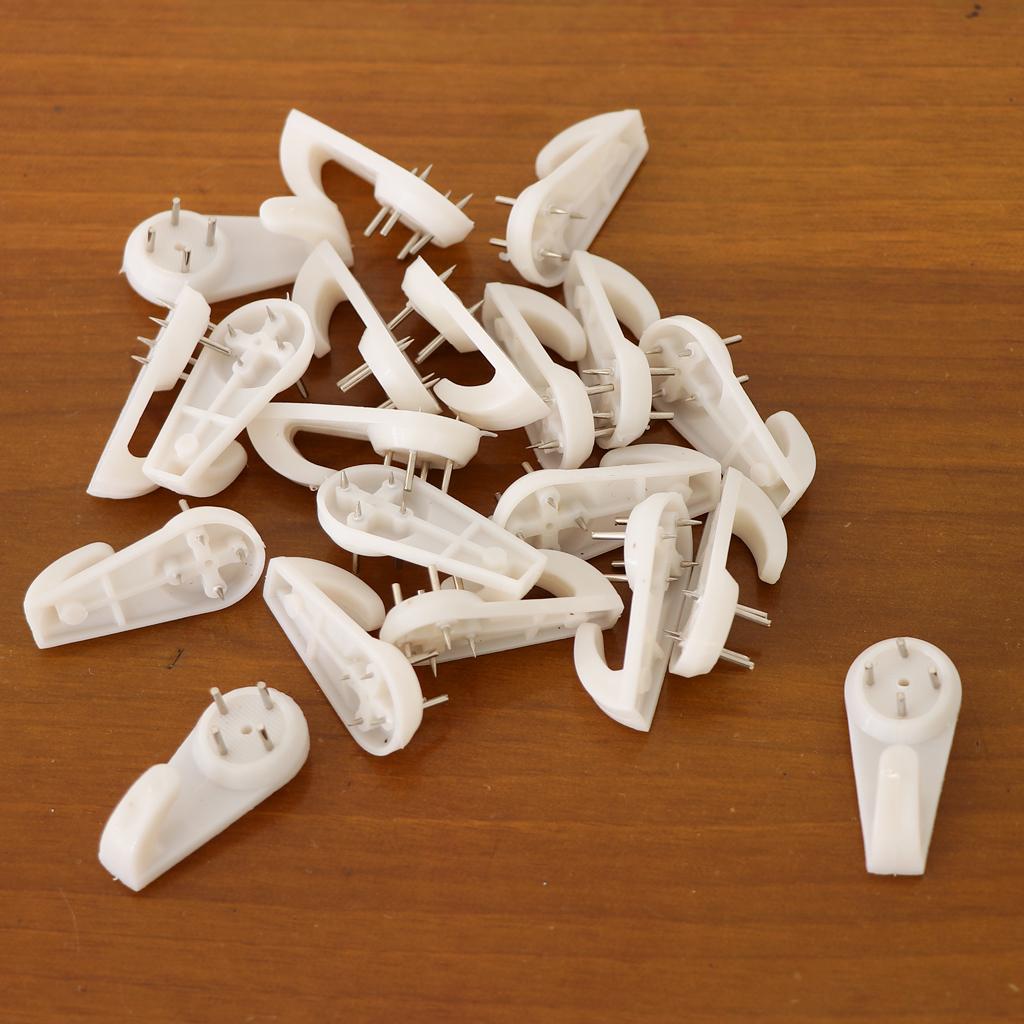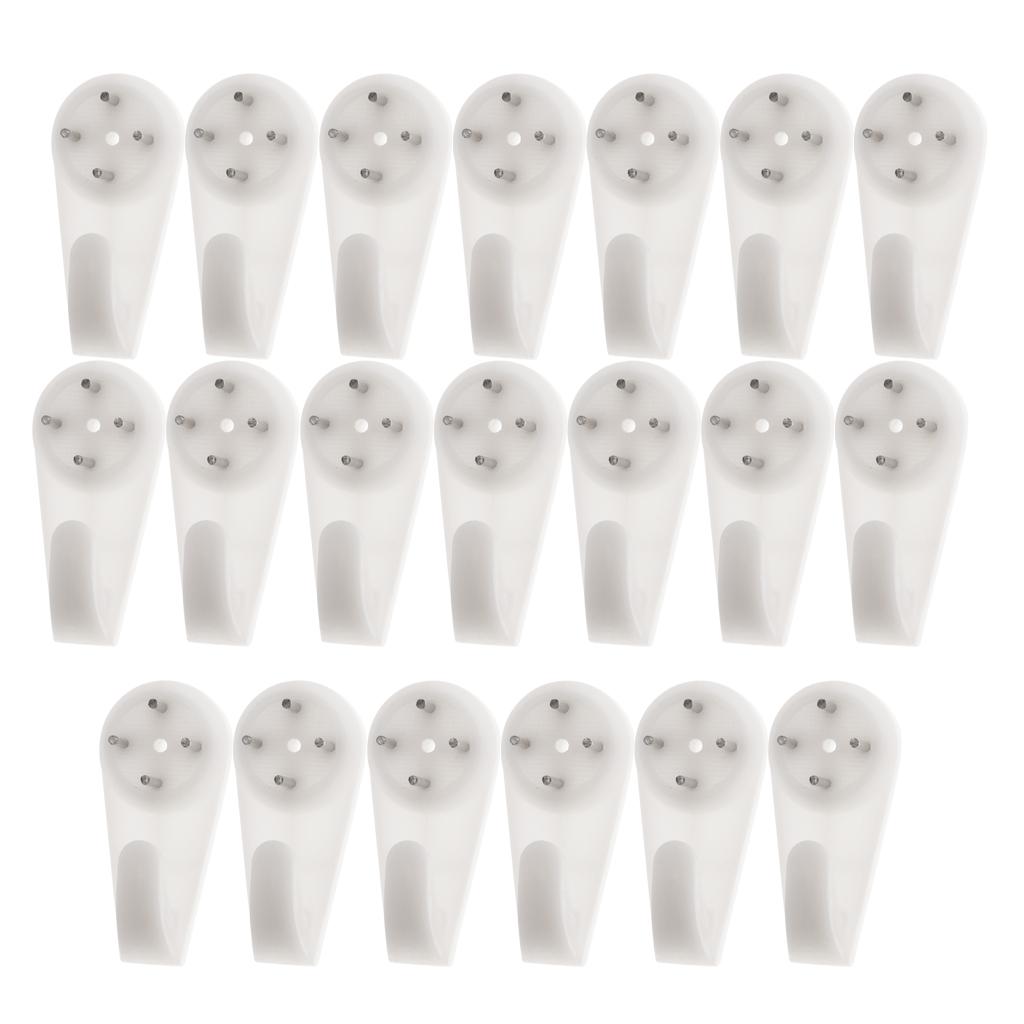 Plastic Hard Wall Picture Frame Hooks Hangers 4-Pin Pack of 20 Large White