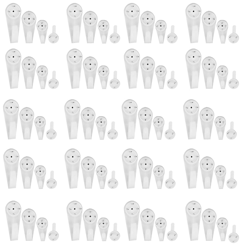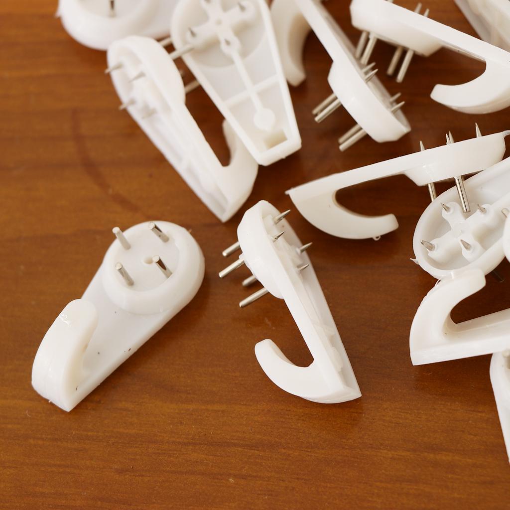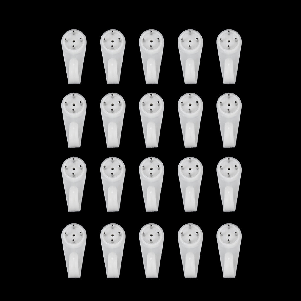 Plastic Hard Wall Picture Frame Hooks Hangers 4-Pin Pack of 20 Large White