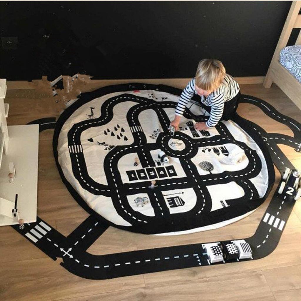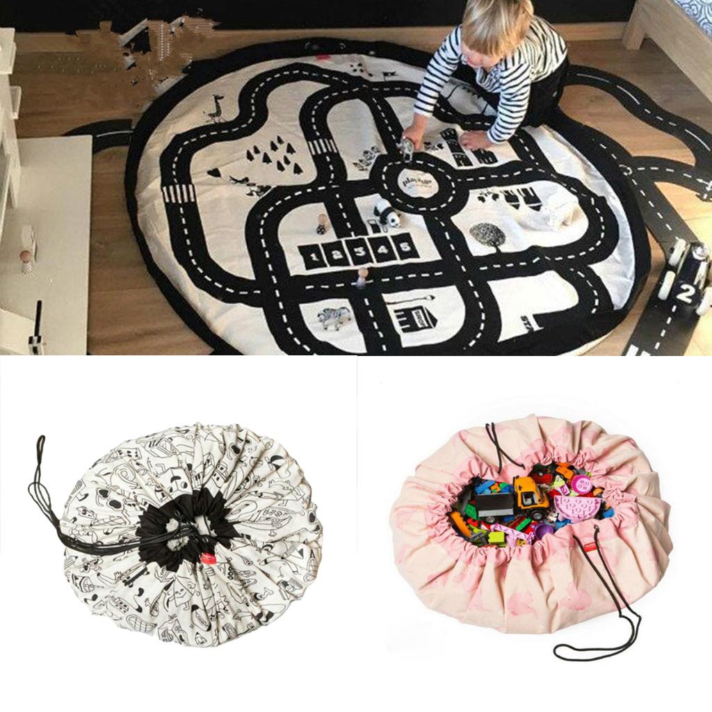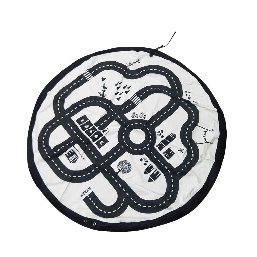 Portable Kids Toy Storage Bag with Drawstring Play Mat Picnic Mat Game Bag Highway