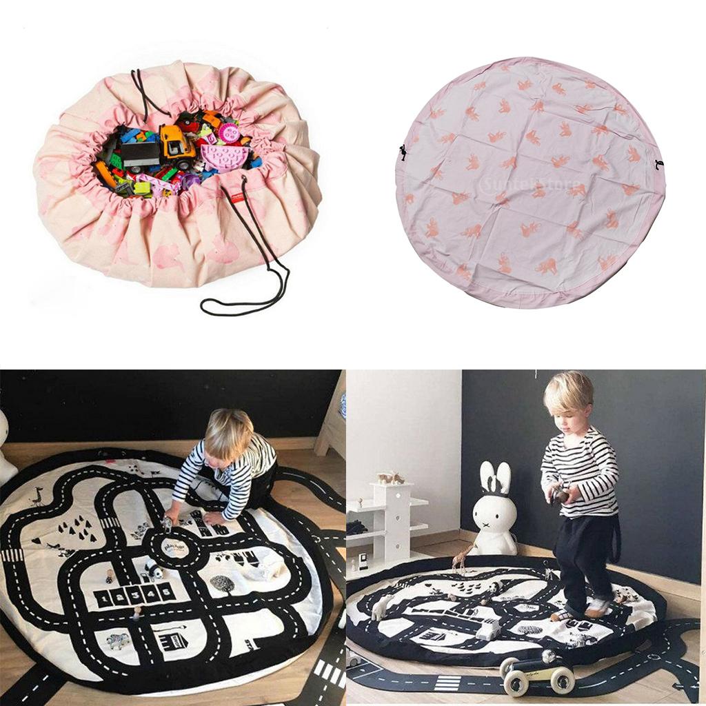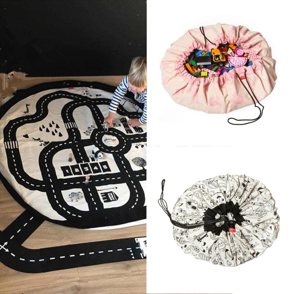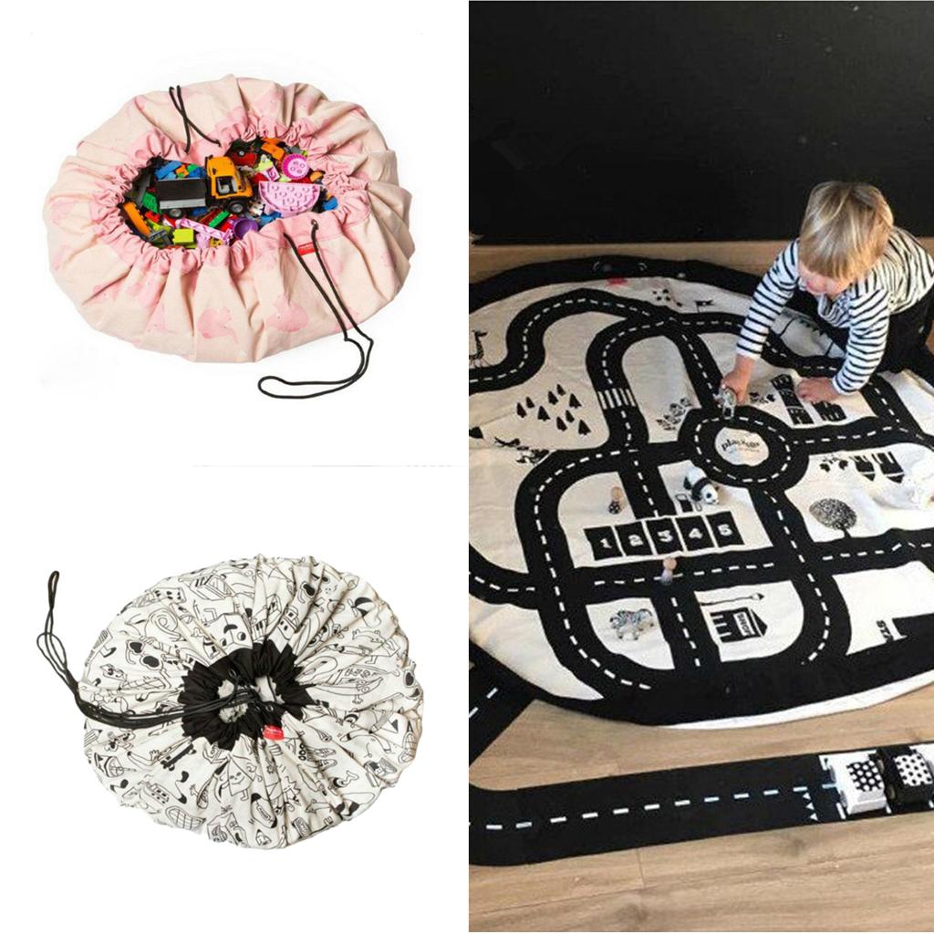 Portable Kids Toy Storage Bag with Drawstring Play Mat Picnic Mat Game Bag Highway