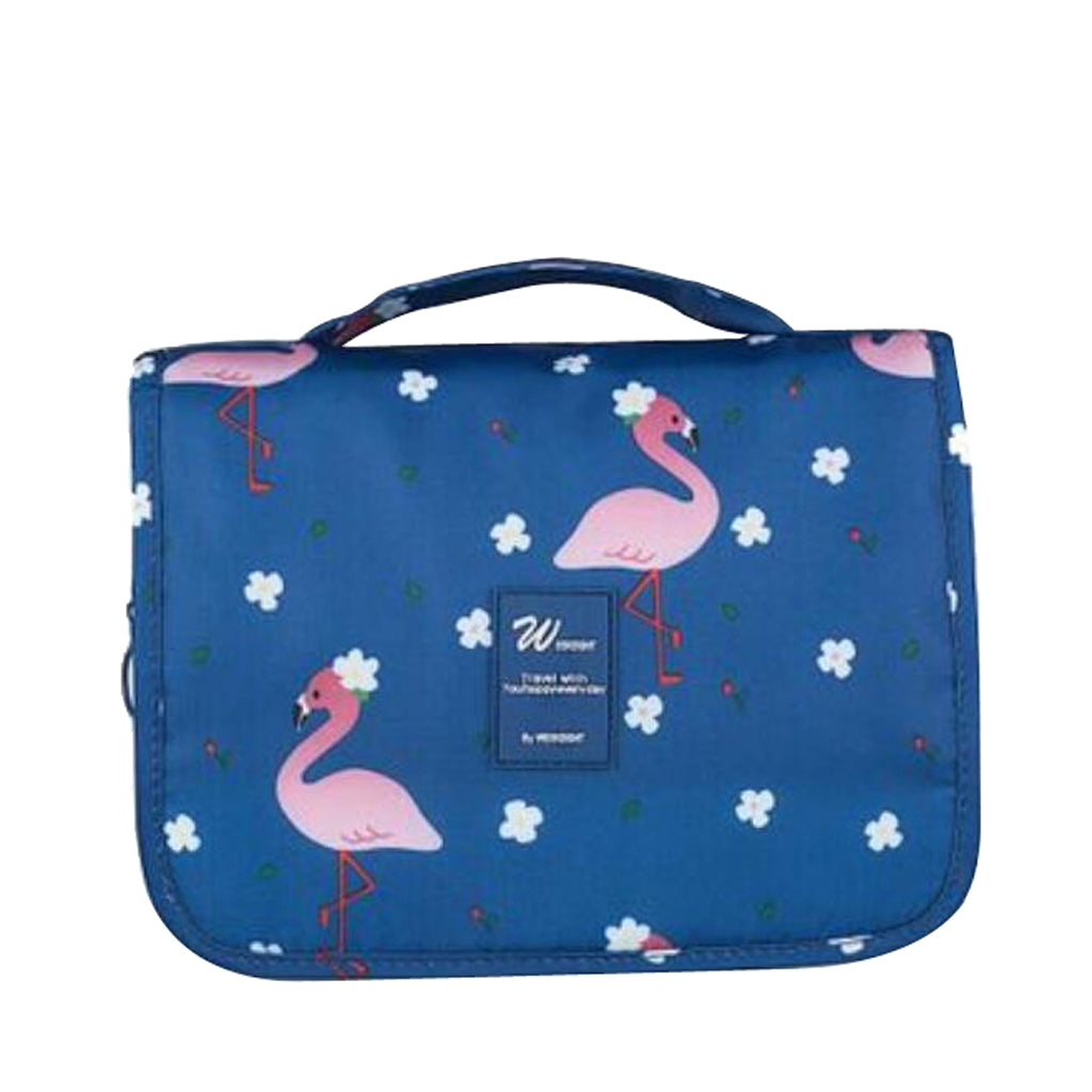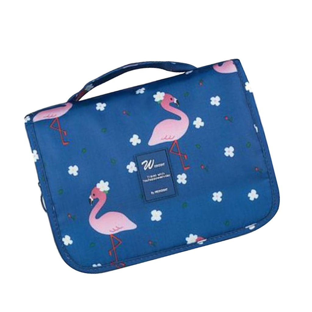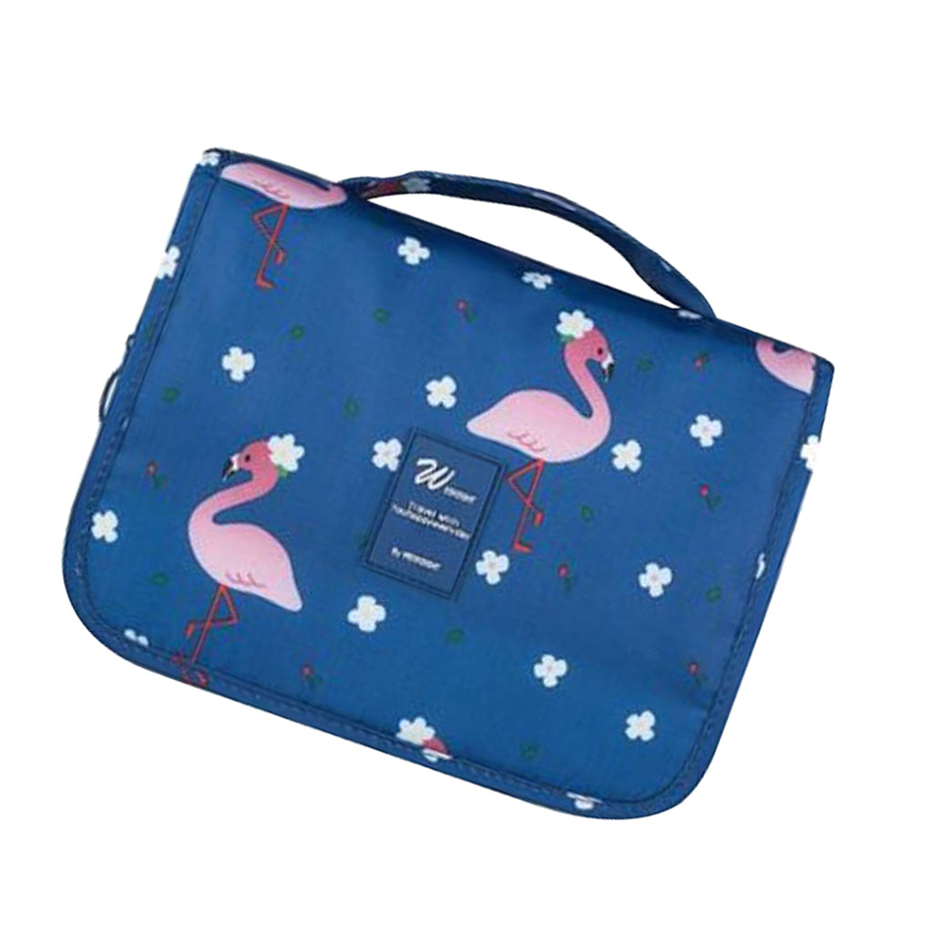 Portable Travel Cosmetic Wash Organizer Tote Storage Bag Blue flamingo