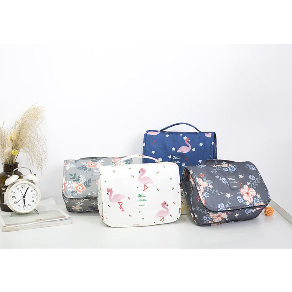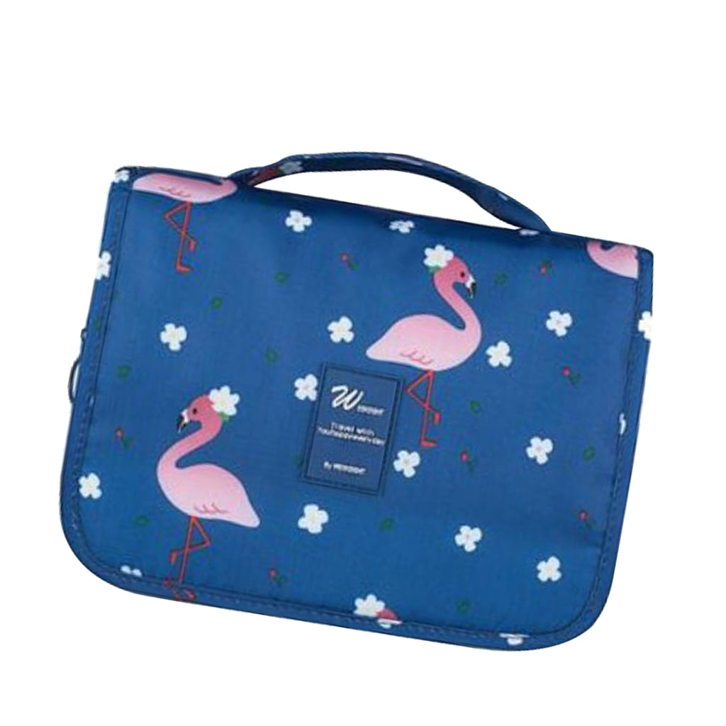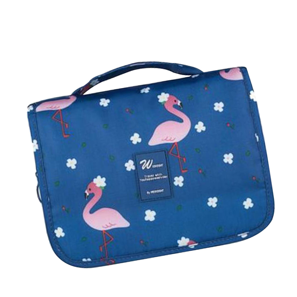 Portable Travel Cosmetic Wash Organizer Tote Storage Bag Blue flamingo