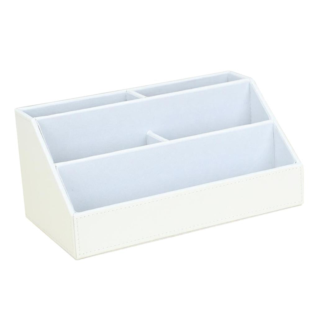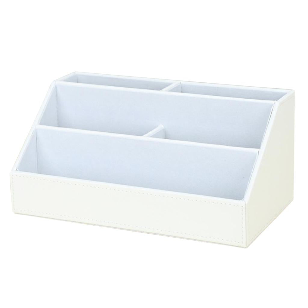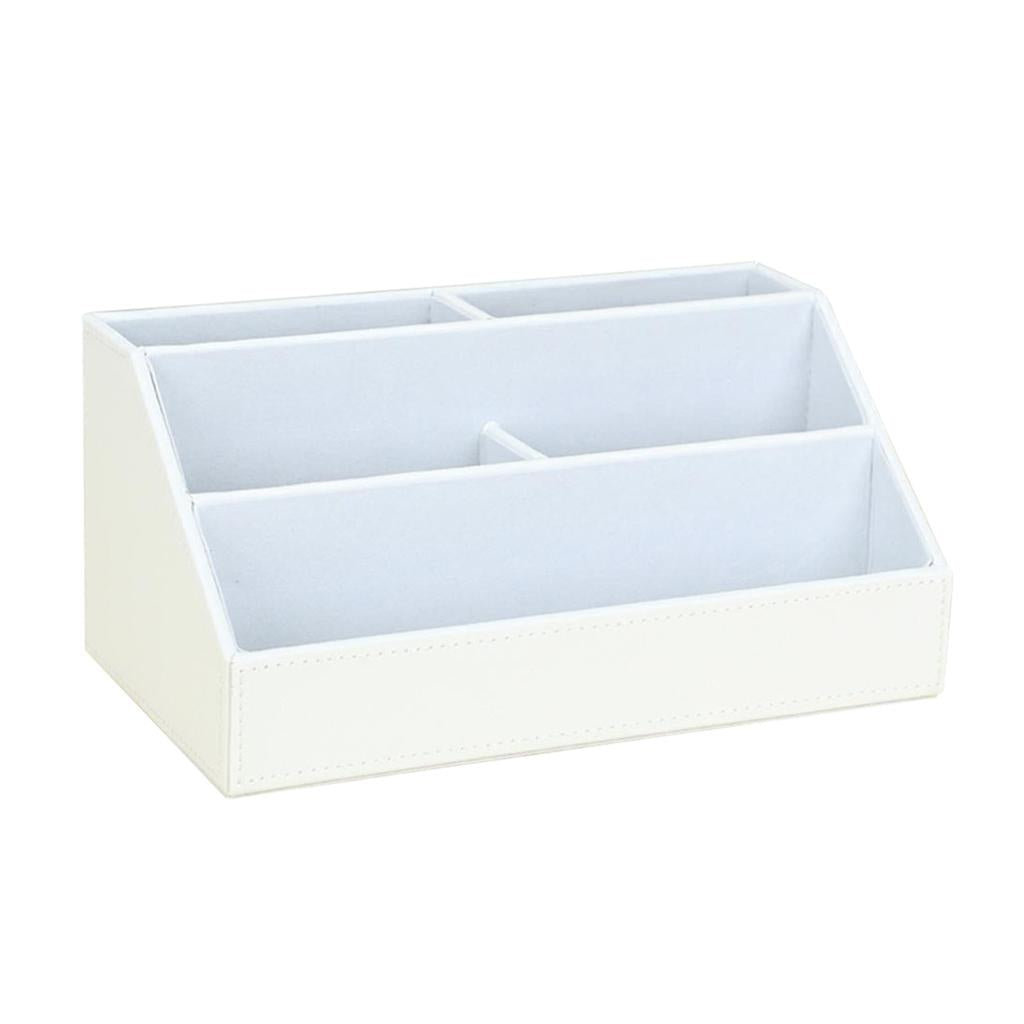 PU Desk Organizer Phone Remote Control Holder Stationery Storage Box White