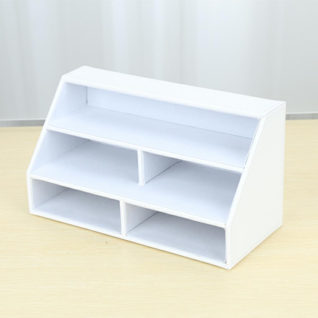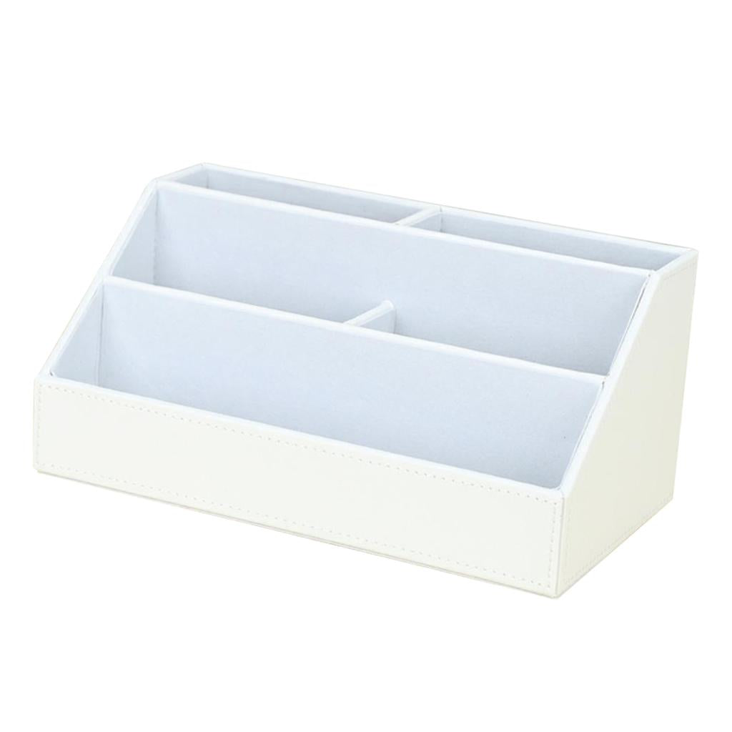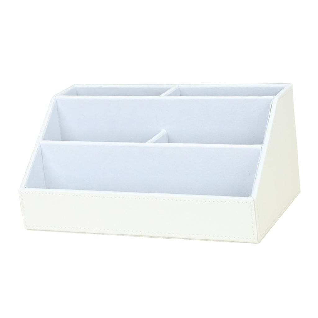 PU Desk Organizer Phone Remote Control Holder Stationery Storage Box White