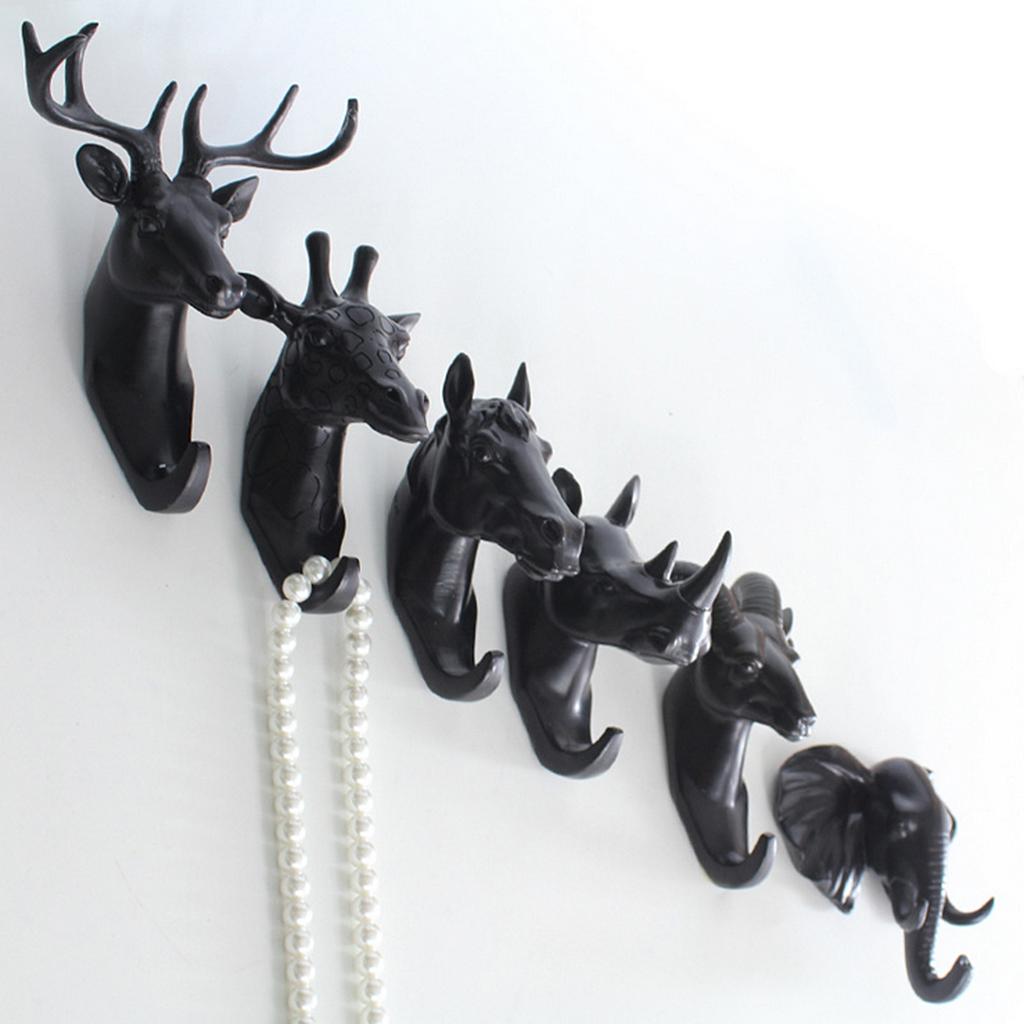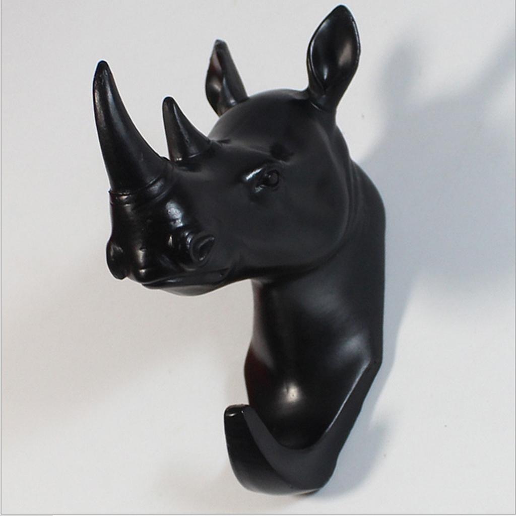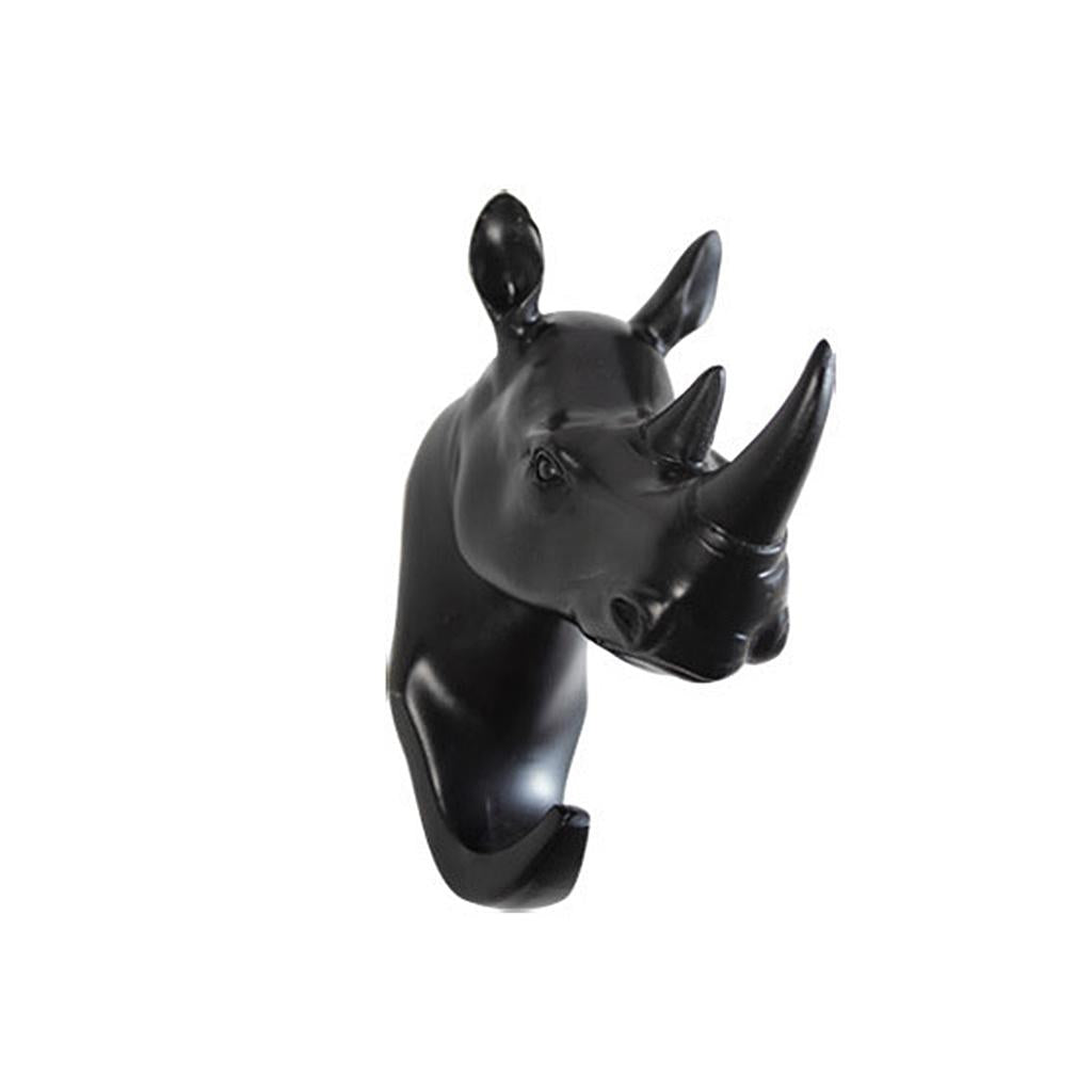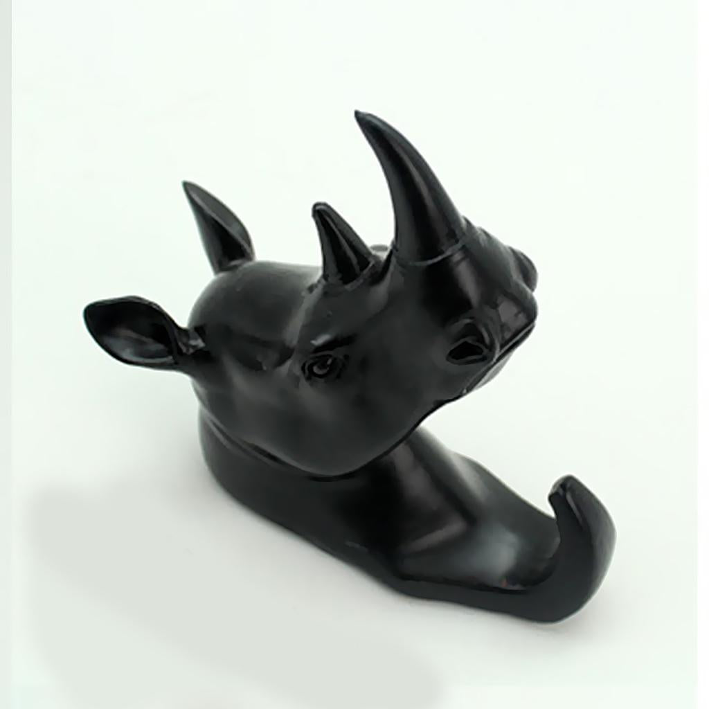 Rhinoceros Head Wall Mount Hanger Resin Coat Hat Hook Rustic Black