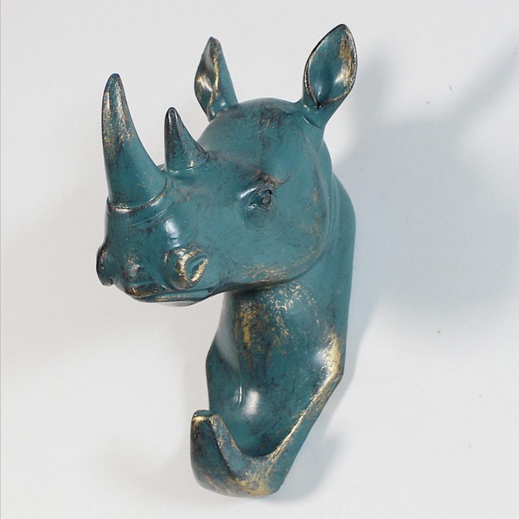Rhinoceros Head Wall Mount Hanger Resin Coat Hat Hook Rustic Bronze