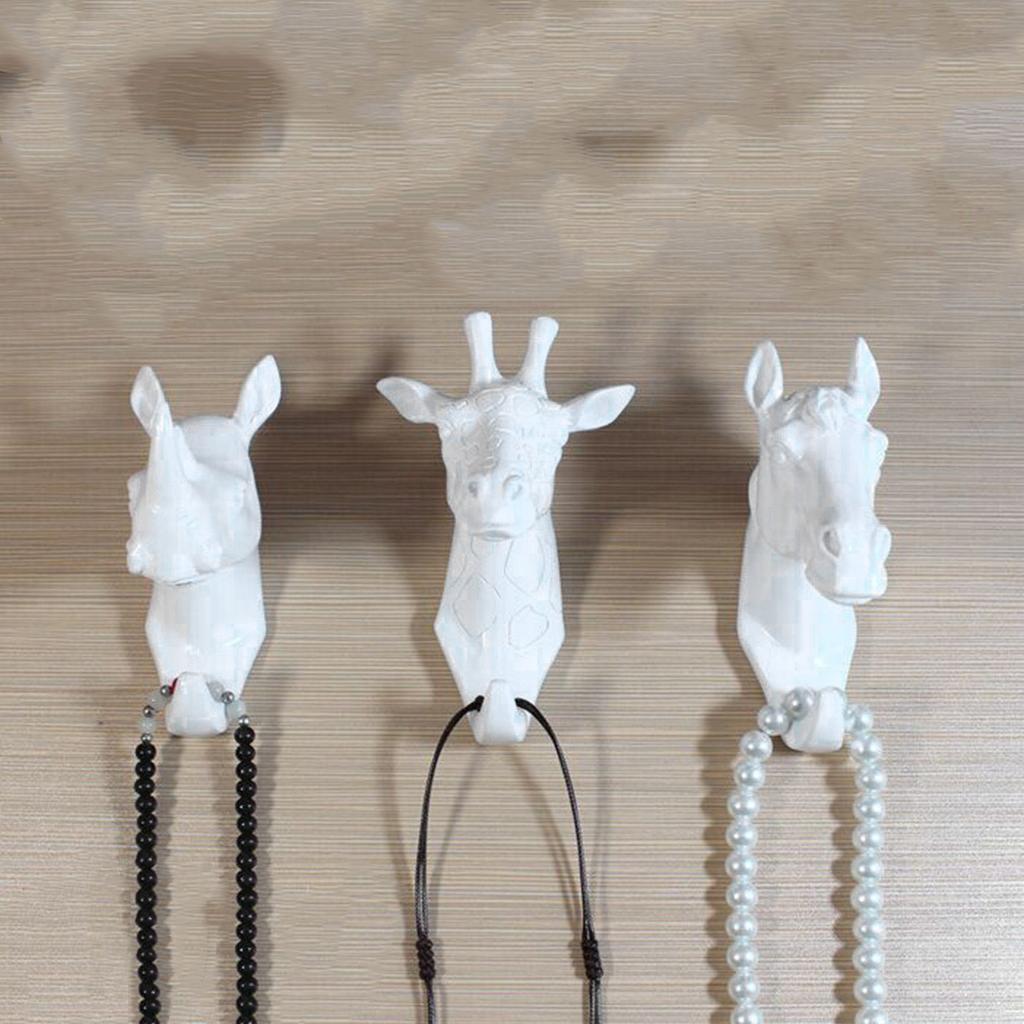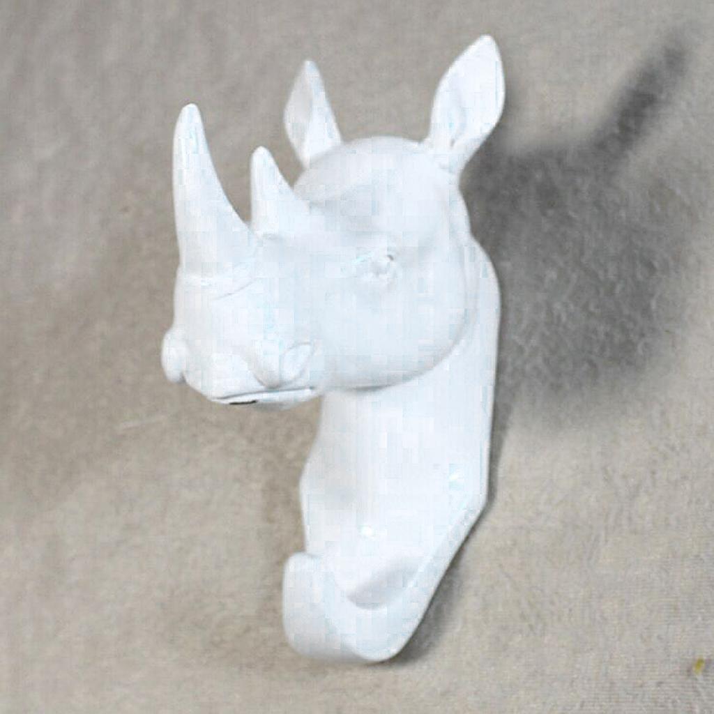 Rhinoceros Head Wall Mount Hanger Resin Coat Hat Hook Rustic White