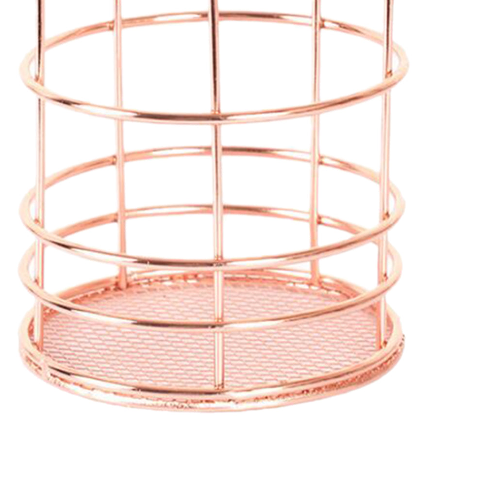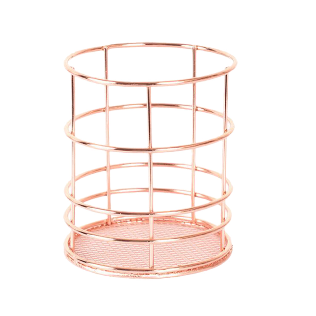 Rose Gold Metal Table Top Storage Basket Pen Holder Organizer Circular