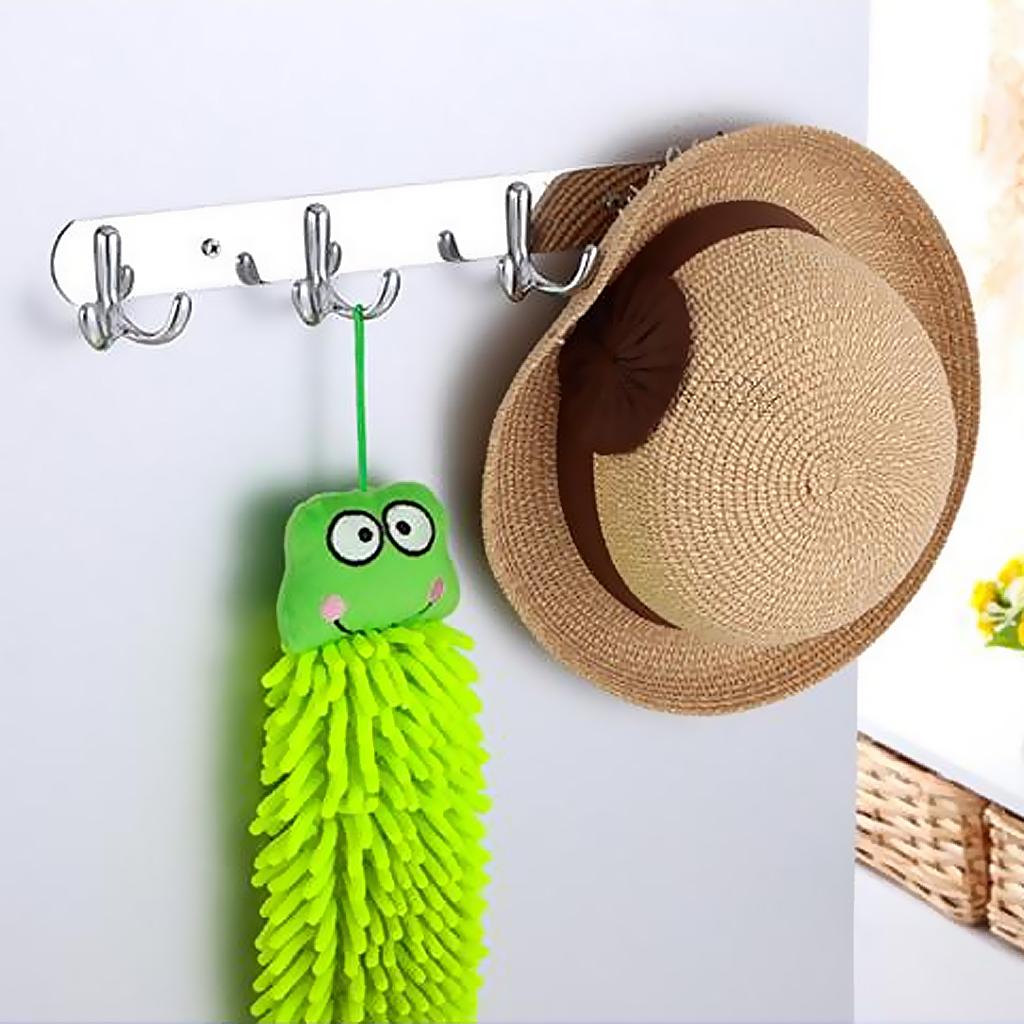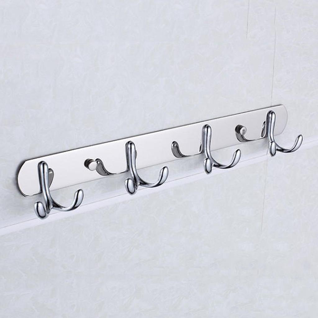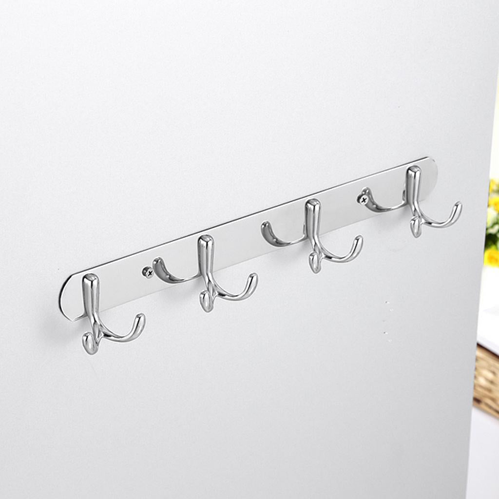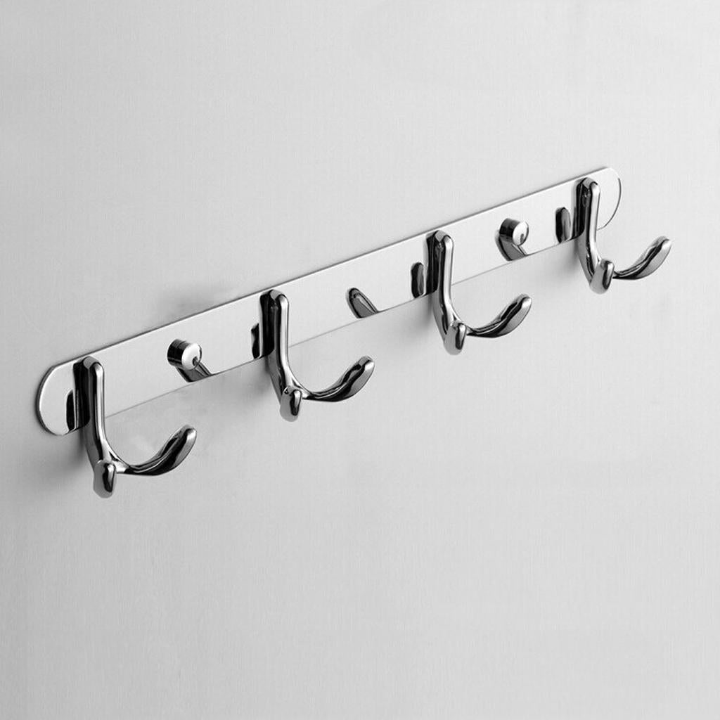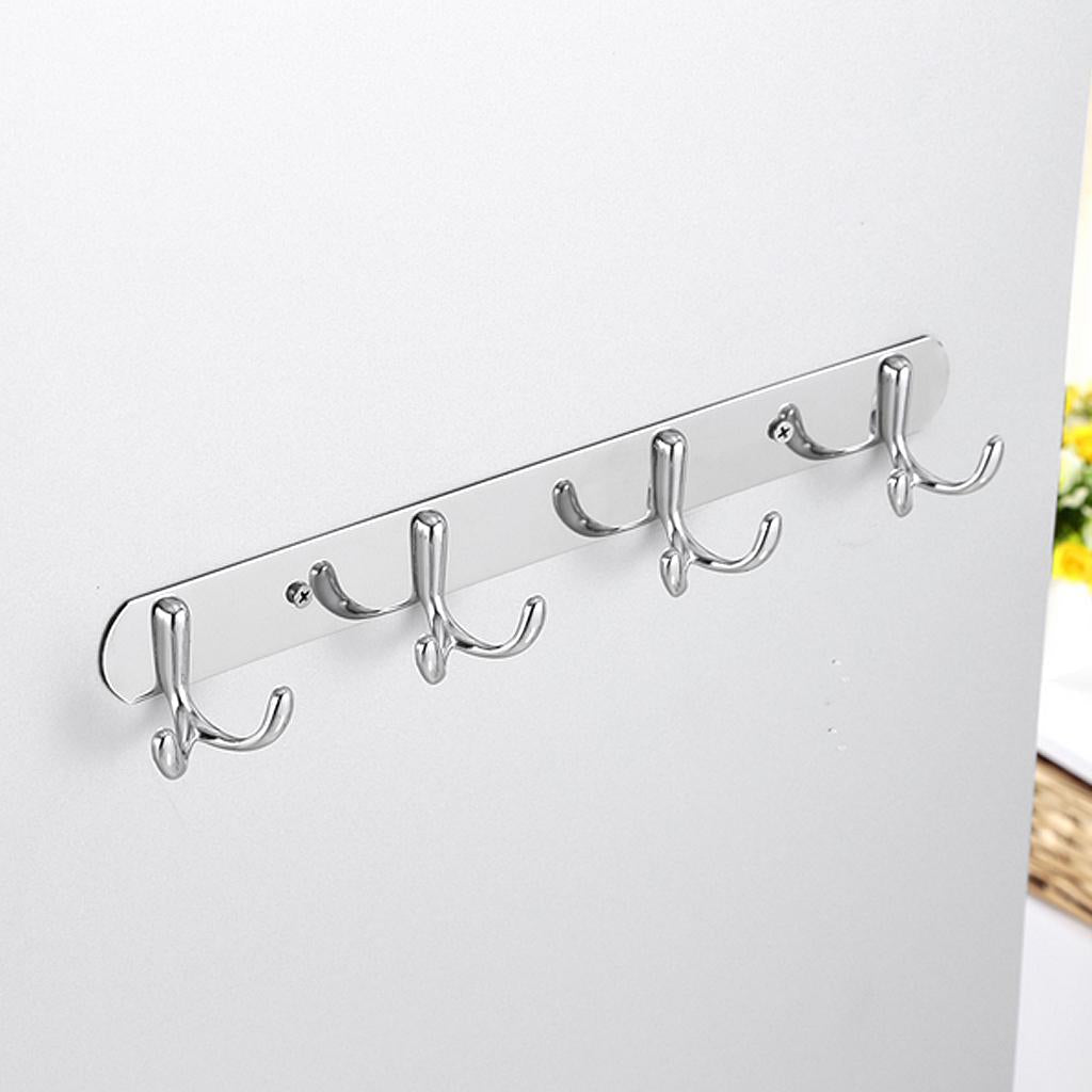 Rust Corrosion Resistant Chrome Double-deck 4 Hook Wall Hanger Coat Hat Towel Rack Home Bathroom Bedroom Kitchen Decor