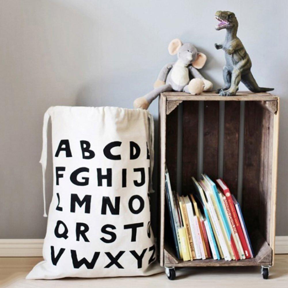 Travel Bedroom Baby Toys Storage Canvas Bag Hanging Drawstring Alphabet