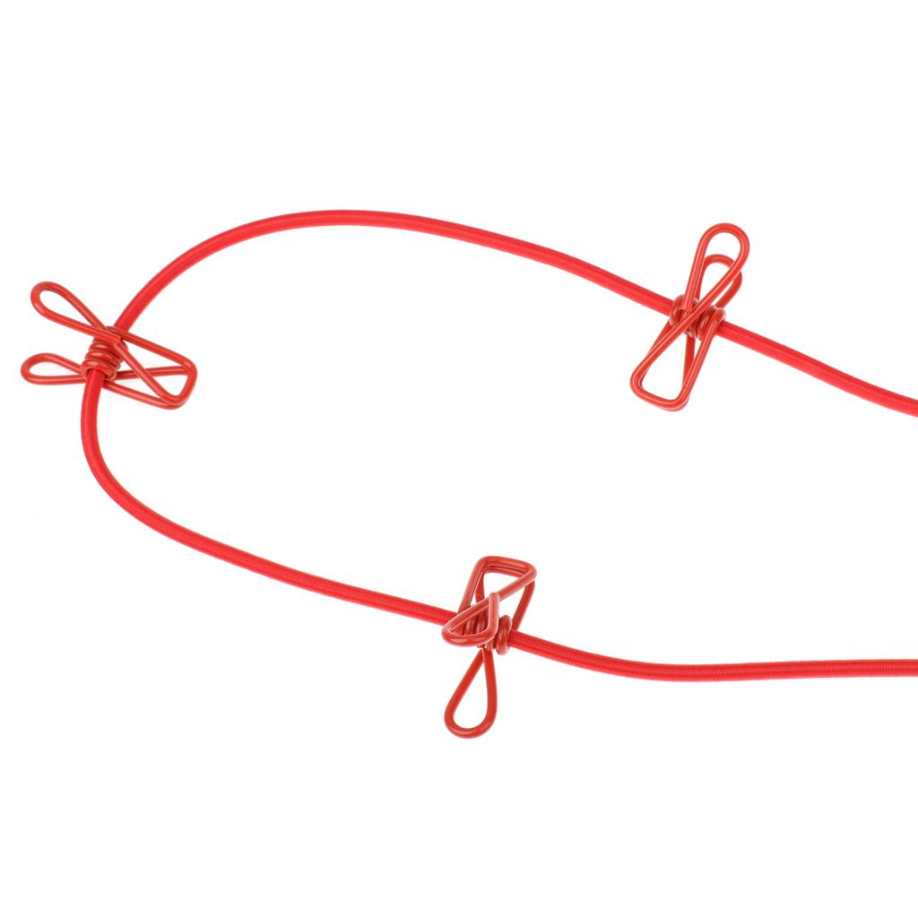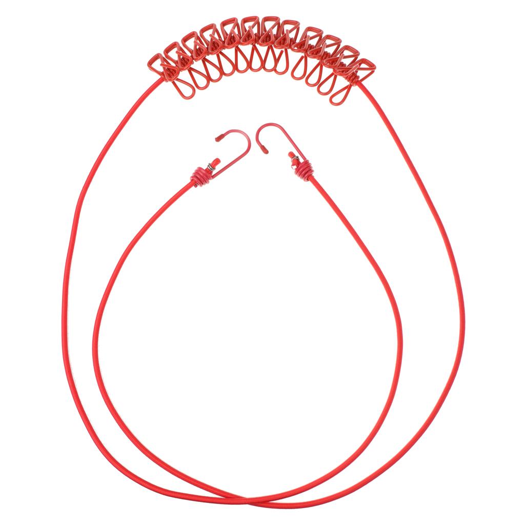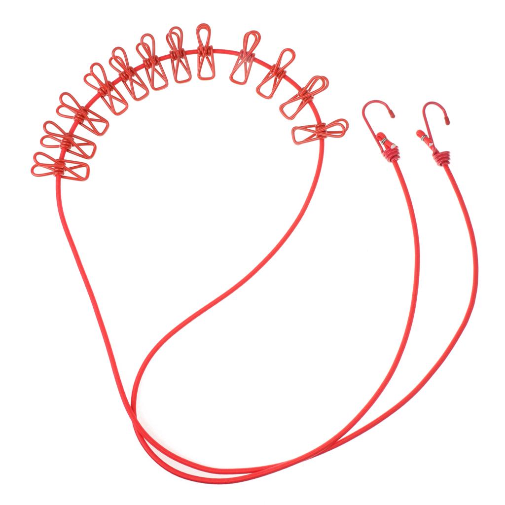 Travel Elastic Windproof Clothesline Rope with 12pc Clips Hangers Red