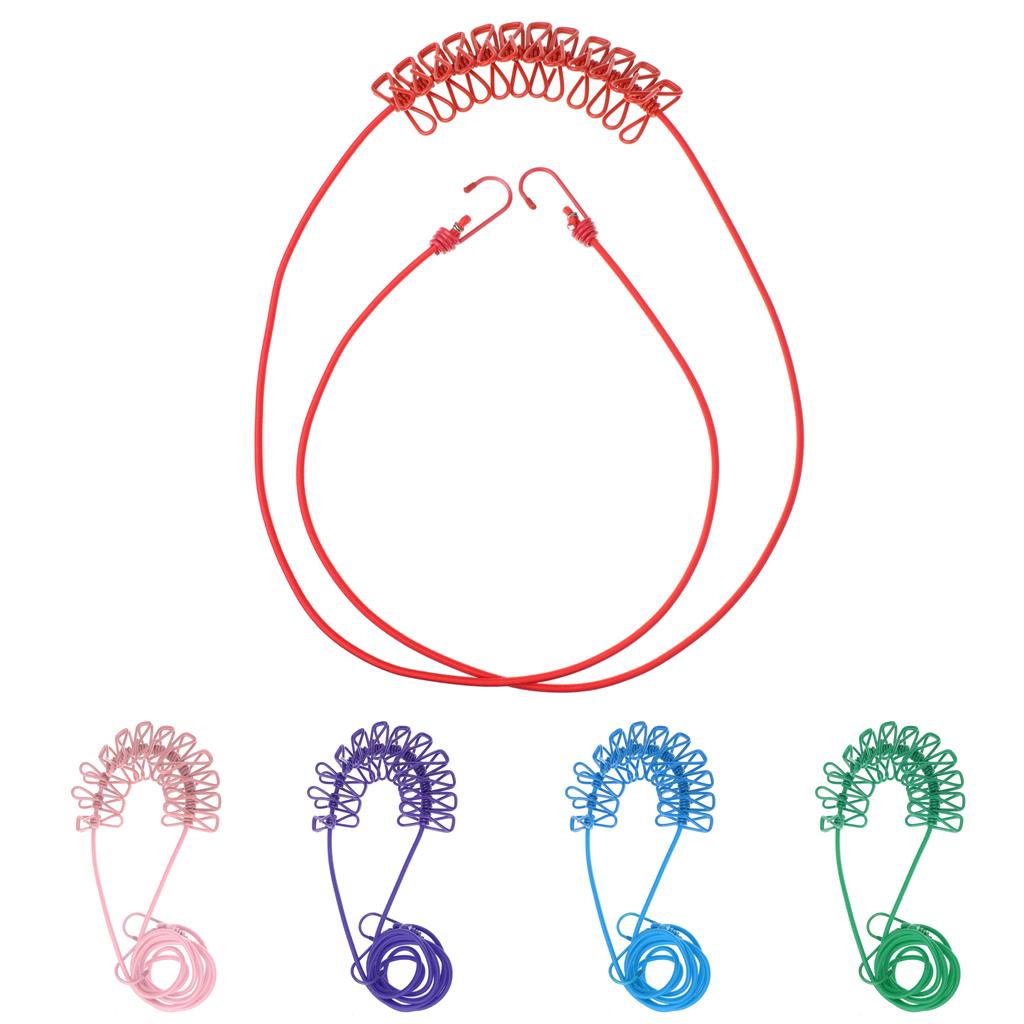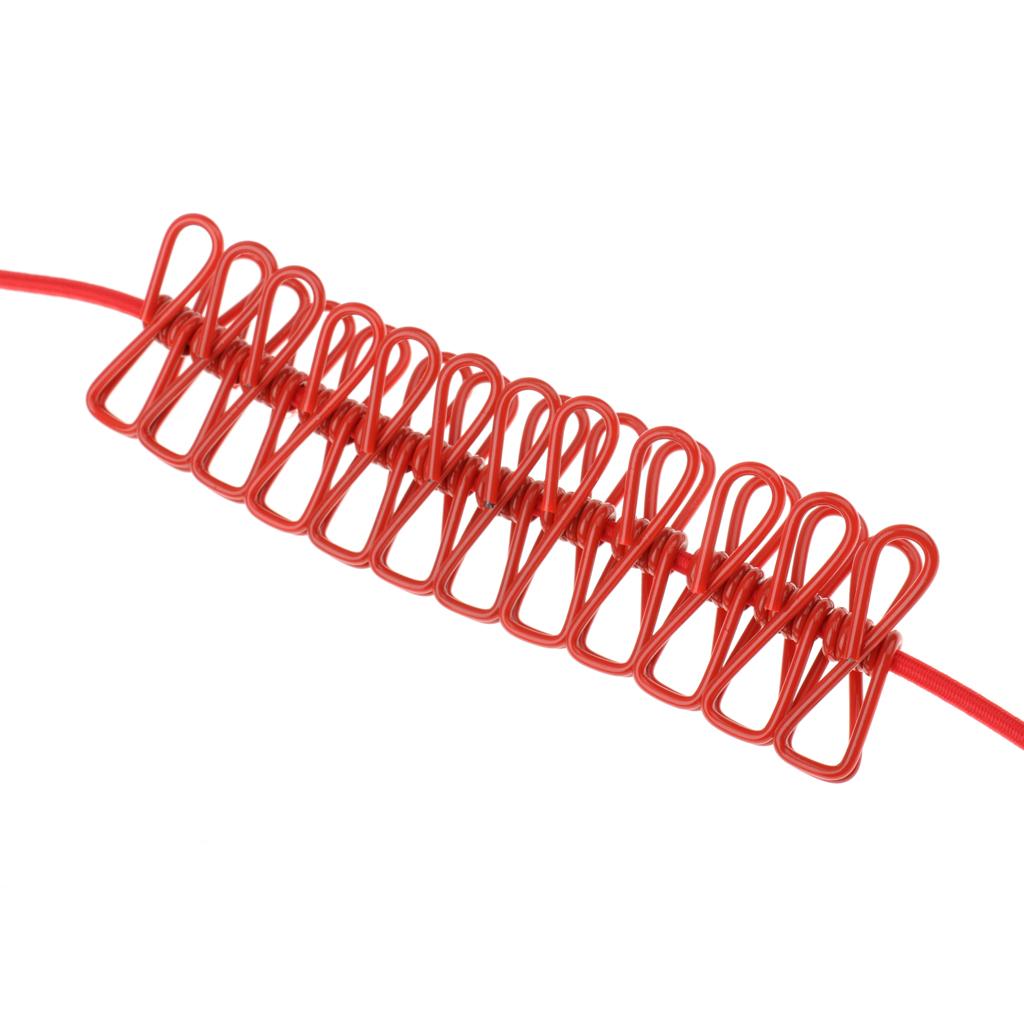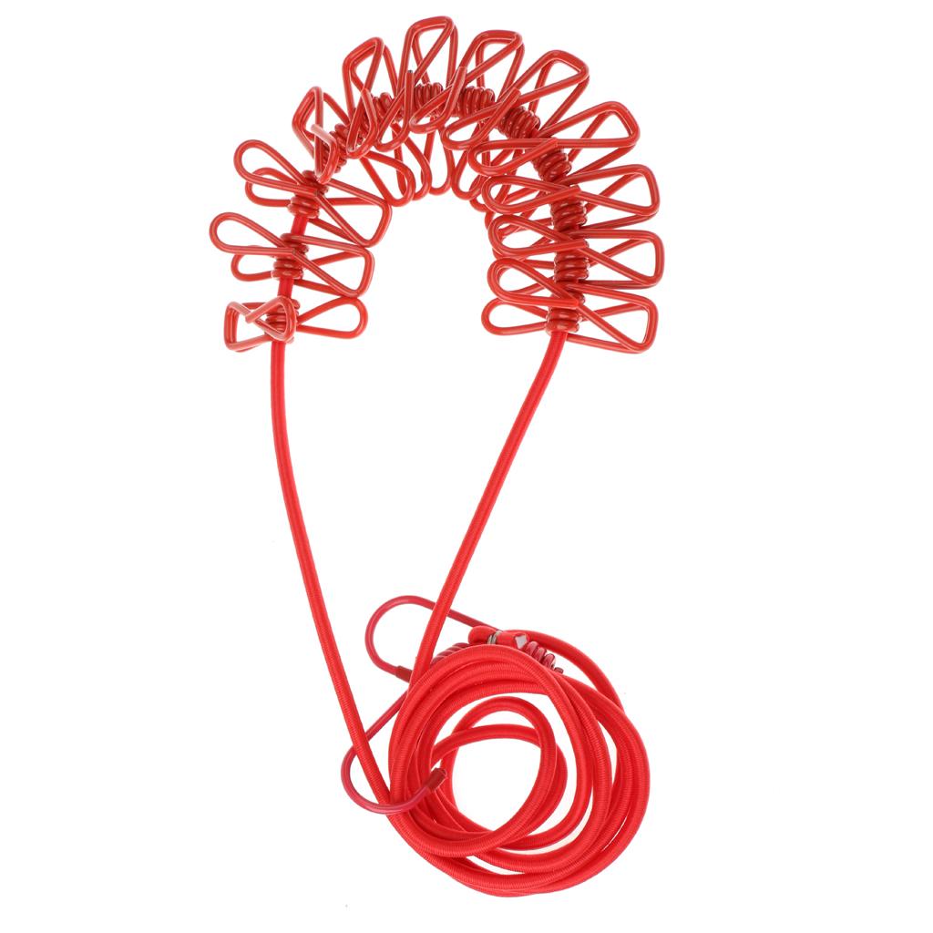 Travel Elastic Windproof Clothesline Rope with 12pc Clips Hangers Red