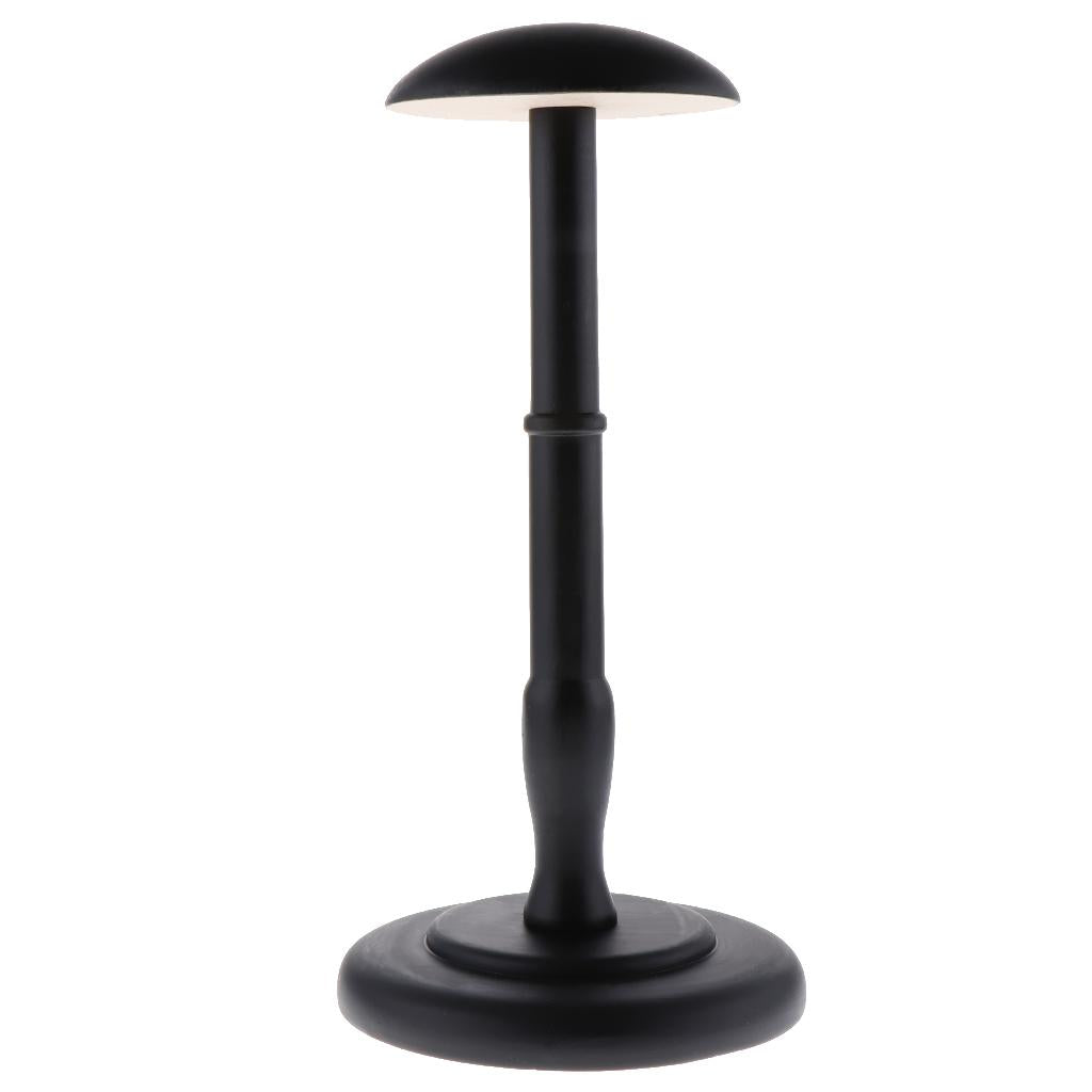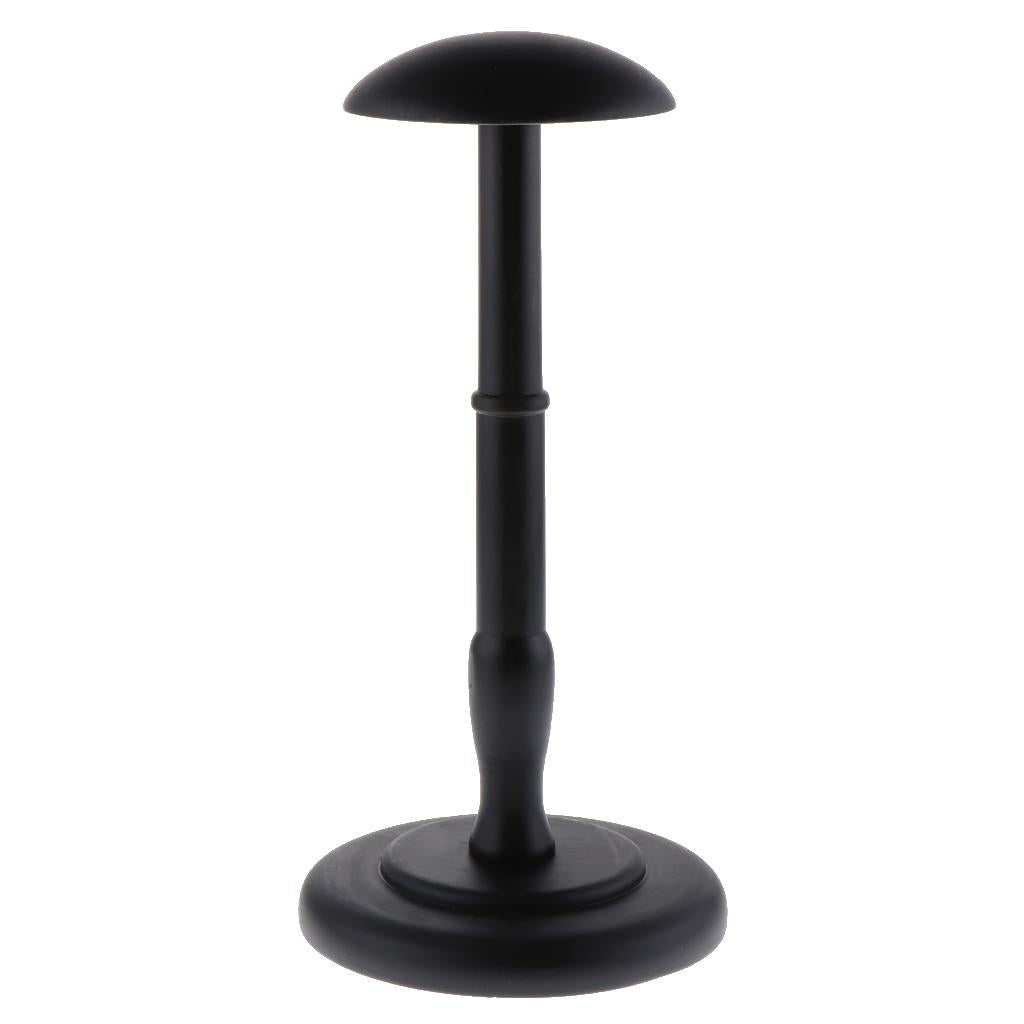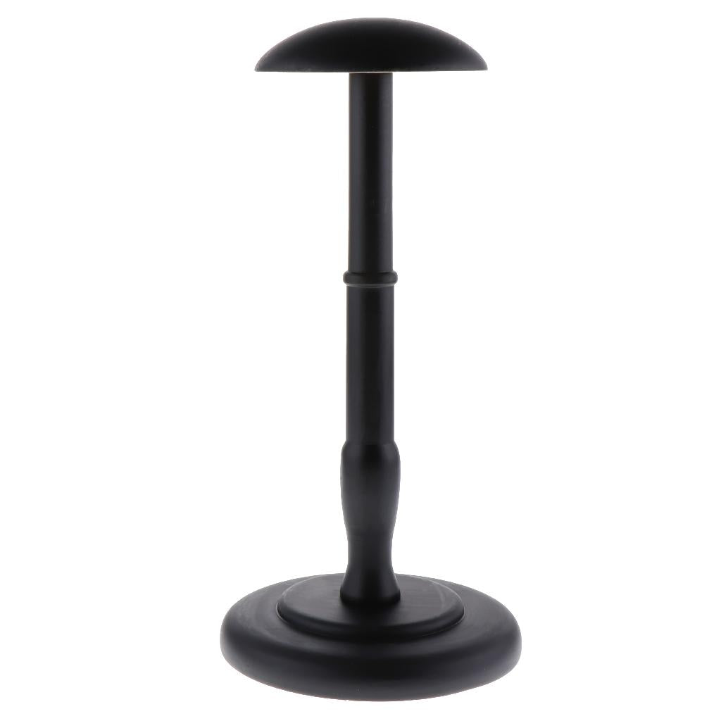 Straight wooden stem and round base help keep this hat/wig stand sturdy and upright
