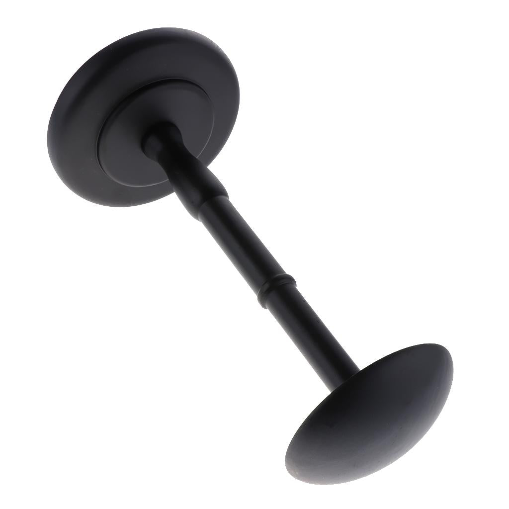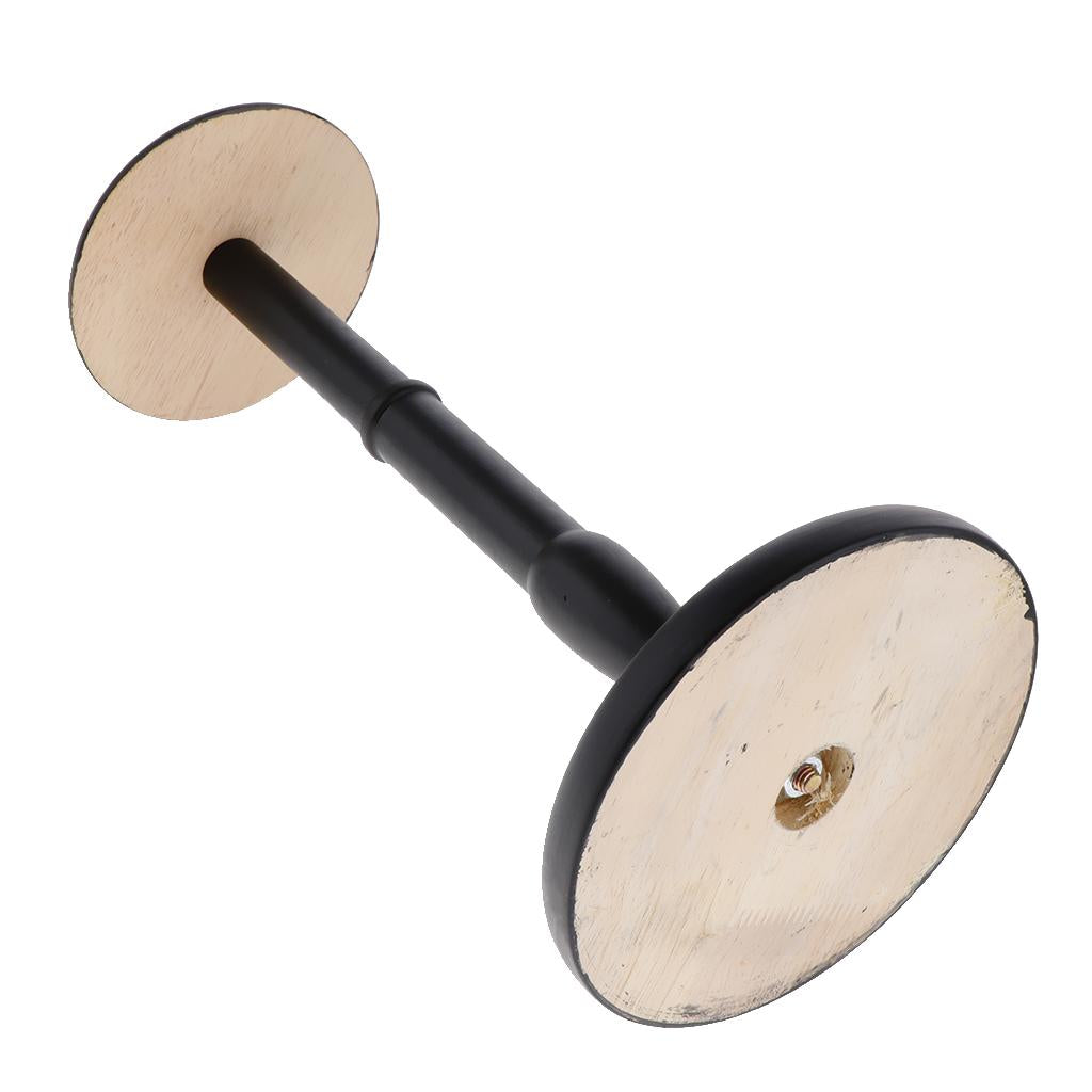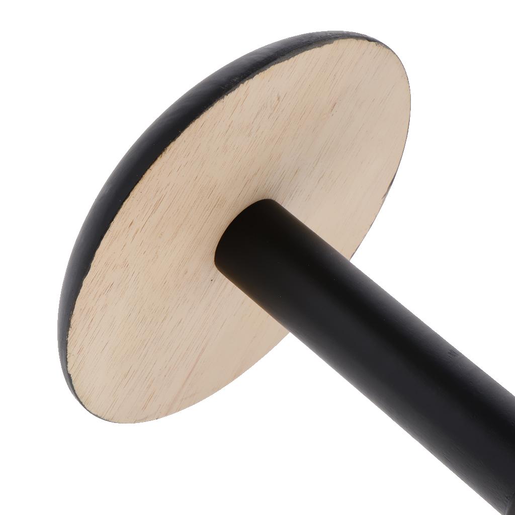 Straight wooden stem and round base help keep this hat/wig stand sturdy and upright