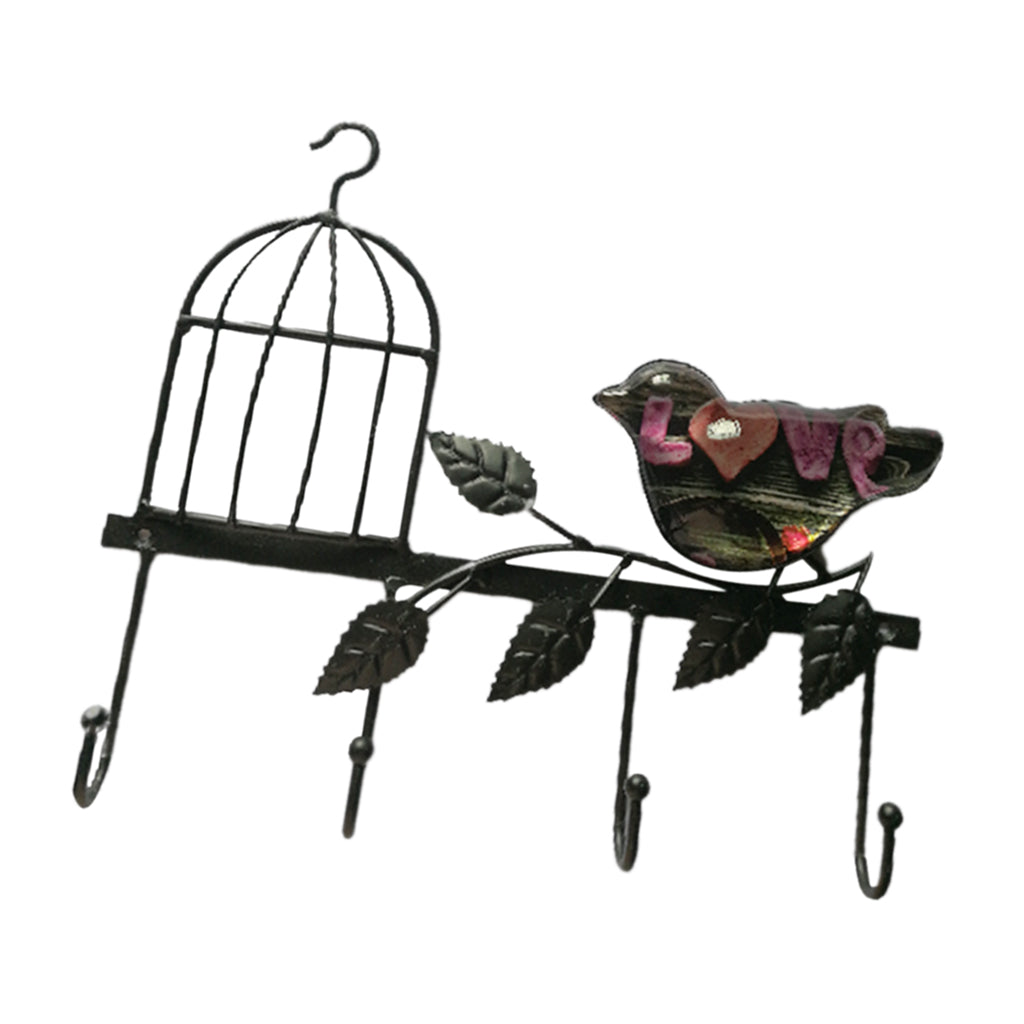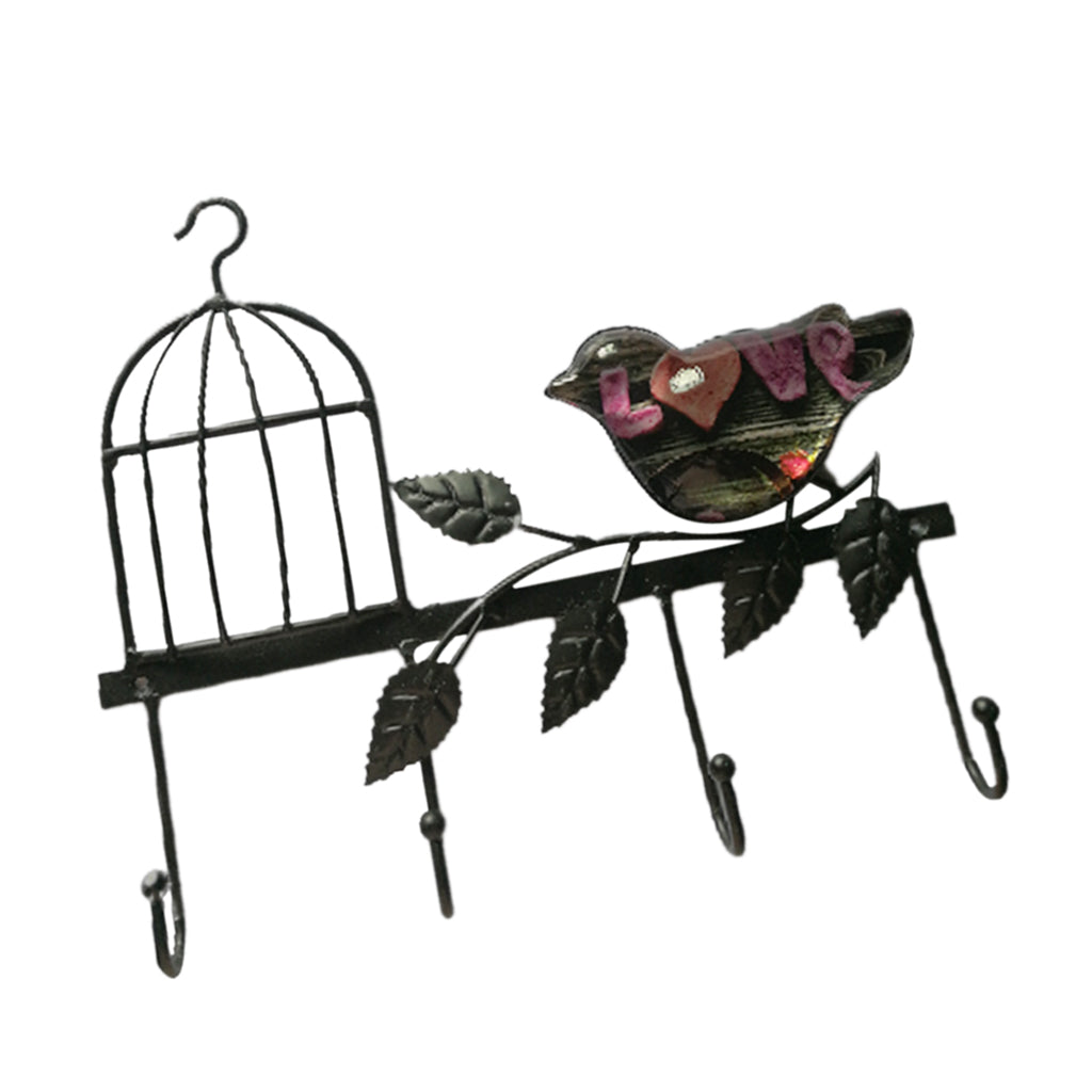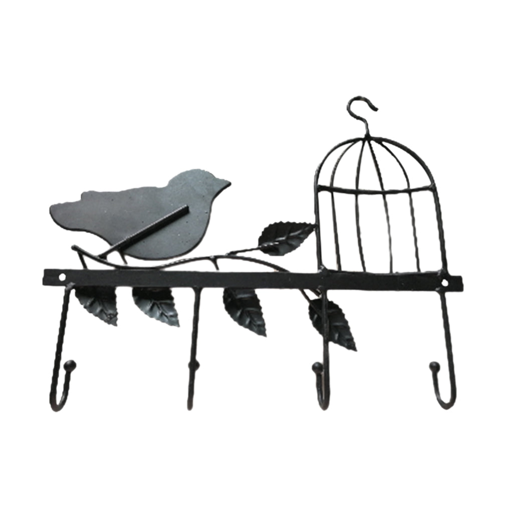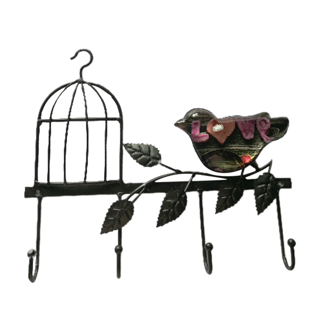 Vintage Metal Birdcage Wall Mount 4 Hook Rack Towel Clothes Coat Hanger